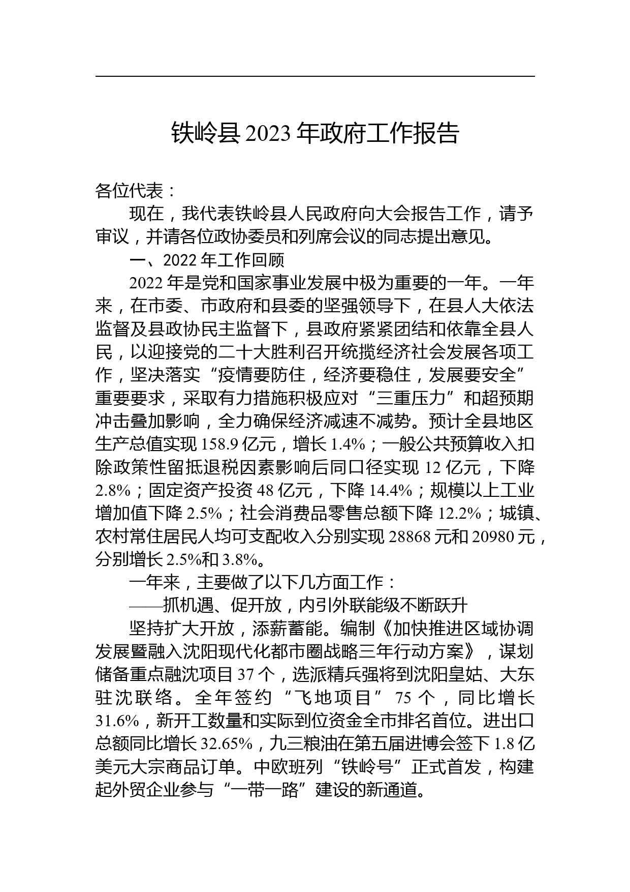 鐵嶺縣2023年政府工作報(bào)告(20221226)VIP免費(fèi)