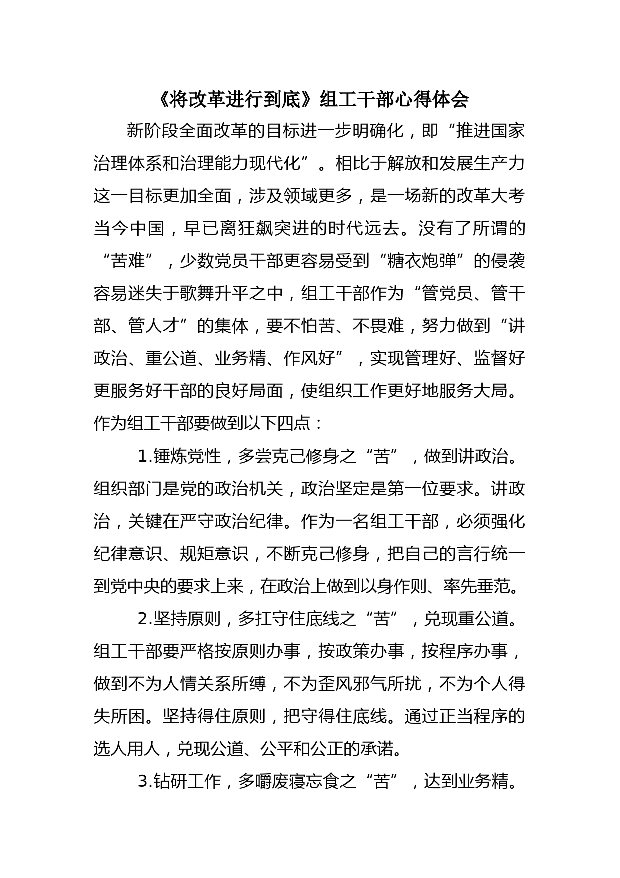 《將改革進行到底》組工干部心得體會VIP免費