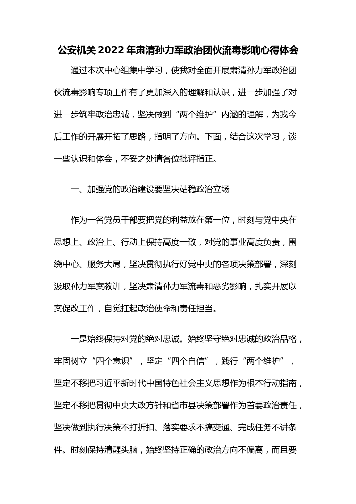 公安機關2022年肅清孫力軍政治團伙流毒影響心得體會(1)VIP免費