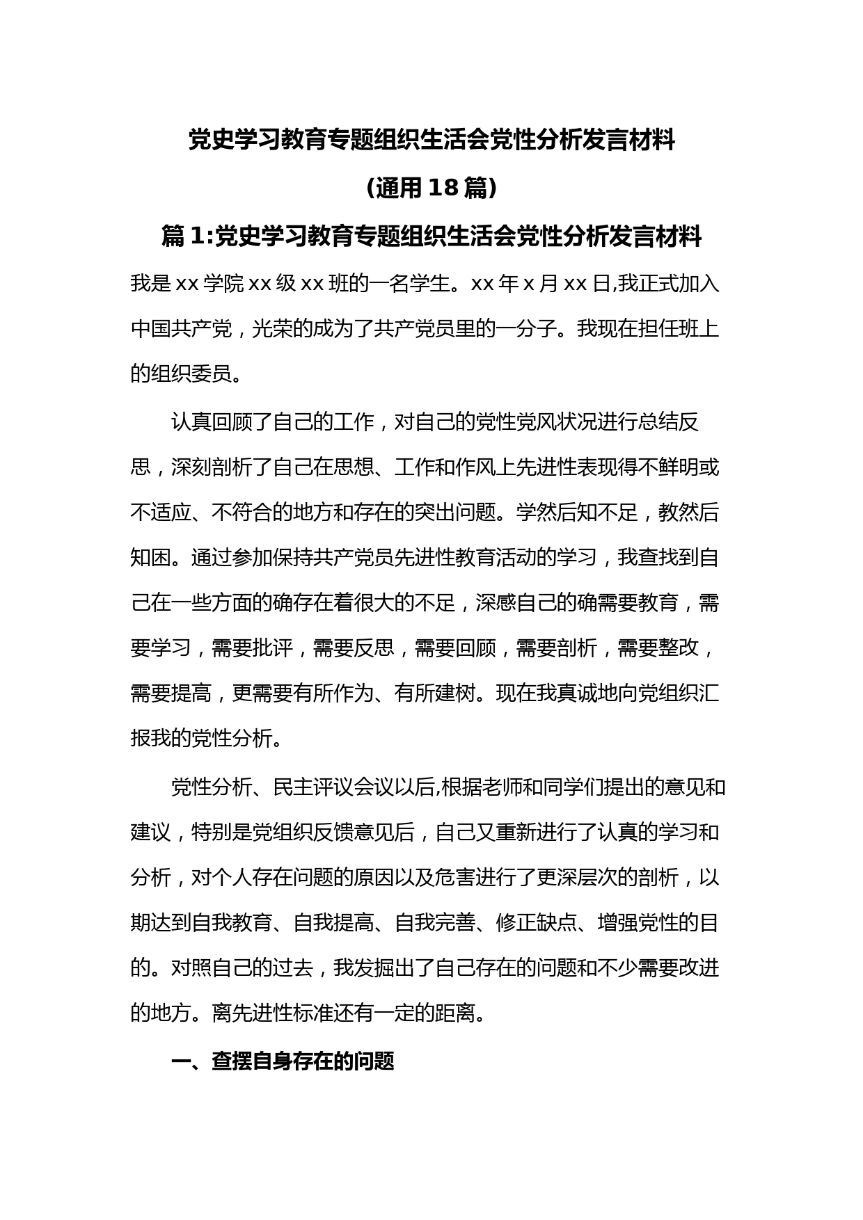 (通用18篇)黨史學(xué)習(xí)教育專題組織生活會黨性分析發(fā)言材料VIP免費(fèi)