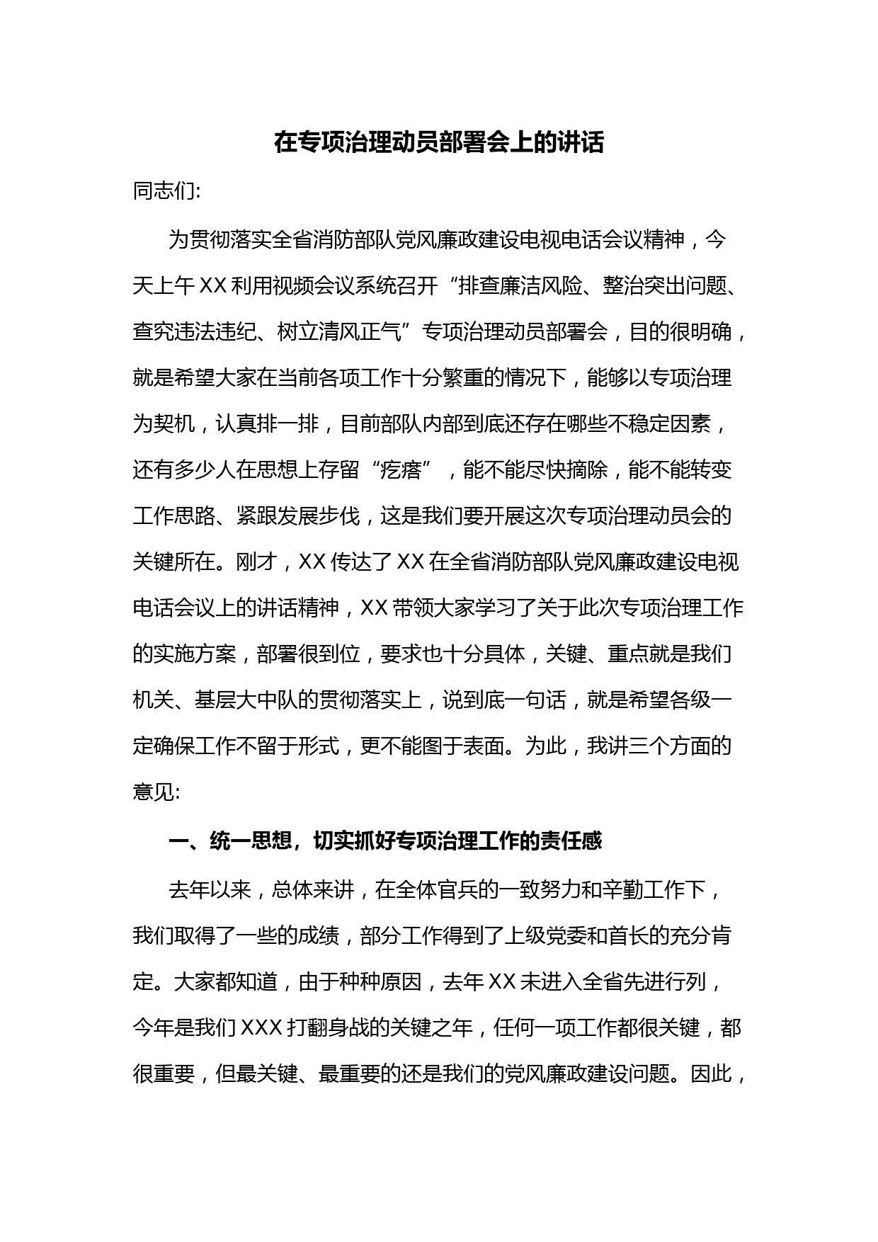 在專項(xiàng)治理動(dòng)員部署會(huì)上的講話VIP免費(fèi)