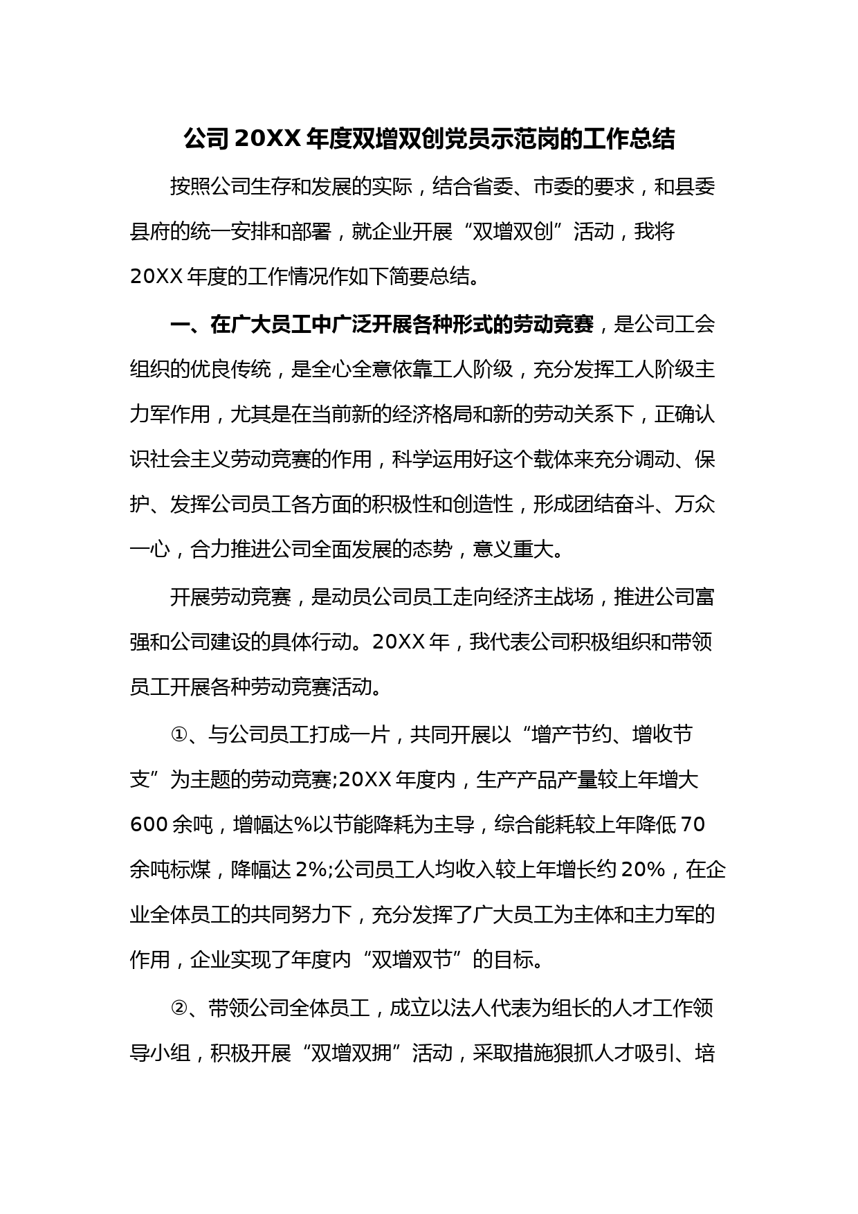 公司20XX年度雙增雙創(chuàng)黨員示范崗的工作總結(jié)VIP免費