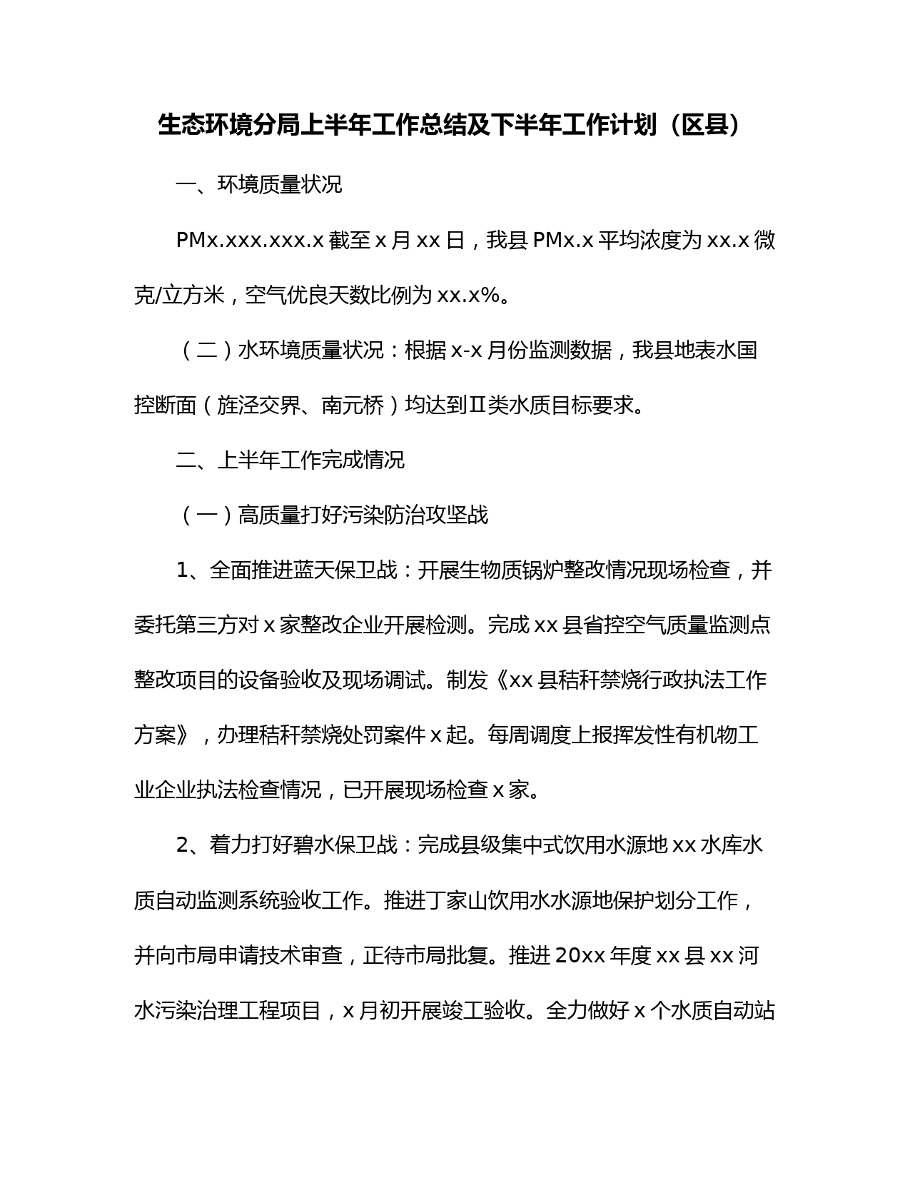 生態(tài)環(huán)境分局上半年工作總結(jié)及下半年工作計劃(區(qū)縣)VIP免費