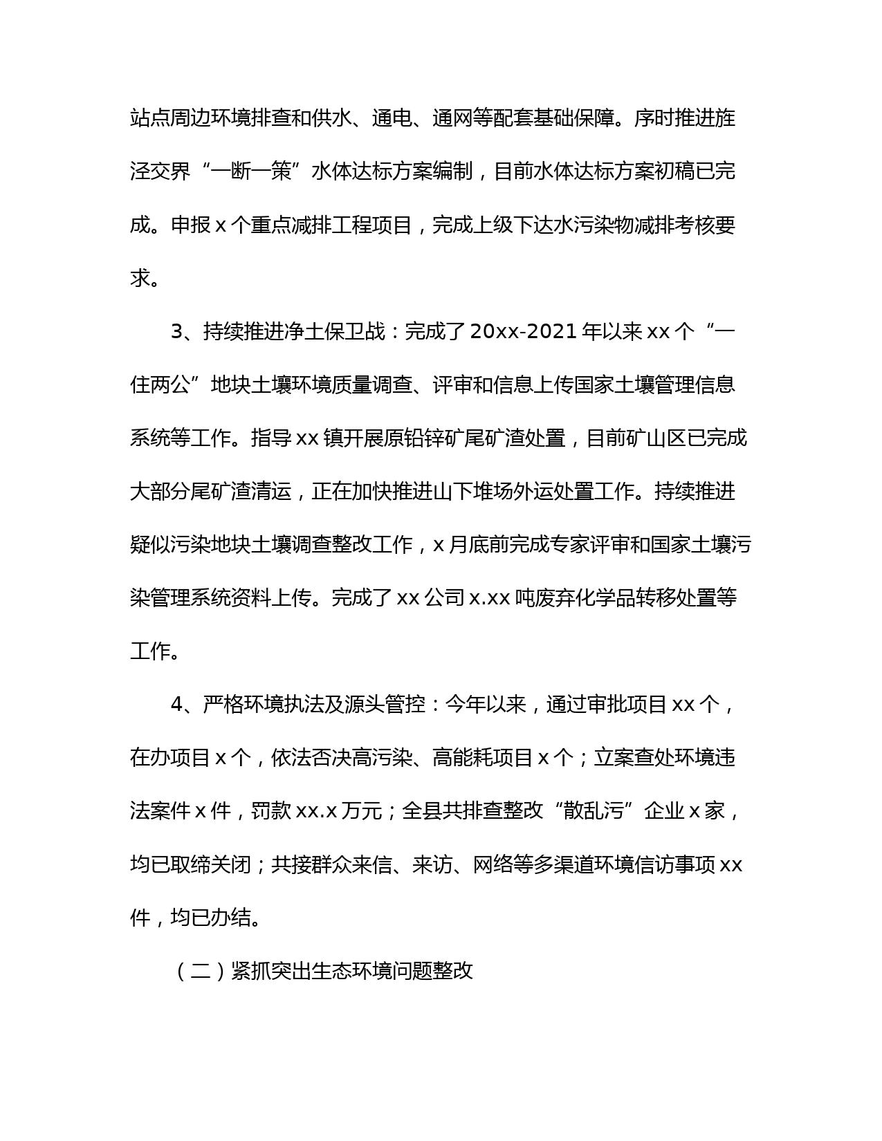 生態(tài)環(huán)境分局上半年工作總結(jié)及下半年工作計劃(區(qū)縣)一、環(huán)境質(zhì)量狀況PMx.xxx.xxx.x截至x月xx日,我縣PMx.x平均濃度為xx.x微克/立方米,空氣優(yōu)良天數(shù)比例為xx.x%。(二)水環(huán)境質(zhì)量狀況:根據(jù)x-x月份監(jiān)測數(shù)據(jù),我縣地表水國控斷面(旌涇交界、南元橋)均達到Ⅱ類水質(zhì)目標要求。二、上半年工作完成情況(一)高質(zhì)量打好污染防治攻堅戰(zhàn)1、全面推進藍天保衛(wèi)戰(zhàn):開展生物質(zhì)鍋爐整改情況現(xiàn)場檢查,并委托第三方對x家整改企業(yè)開展檢測。完成xx縣省控空氣質(zhì)量監(jiān)測點整改項目的設(shè)備驗收及現(xiàn)場調(diào)試。制發(fā)《xx縣秸稈禁燒行政執(zhí)法工作方案》,辦理秸稈禁燒處罰案件x起。每周調(diào)度上...