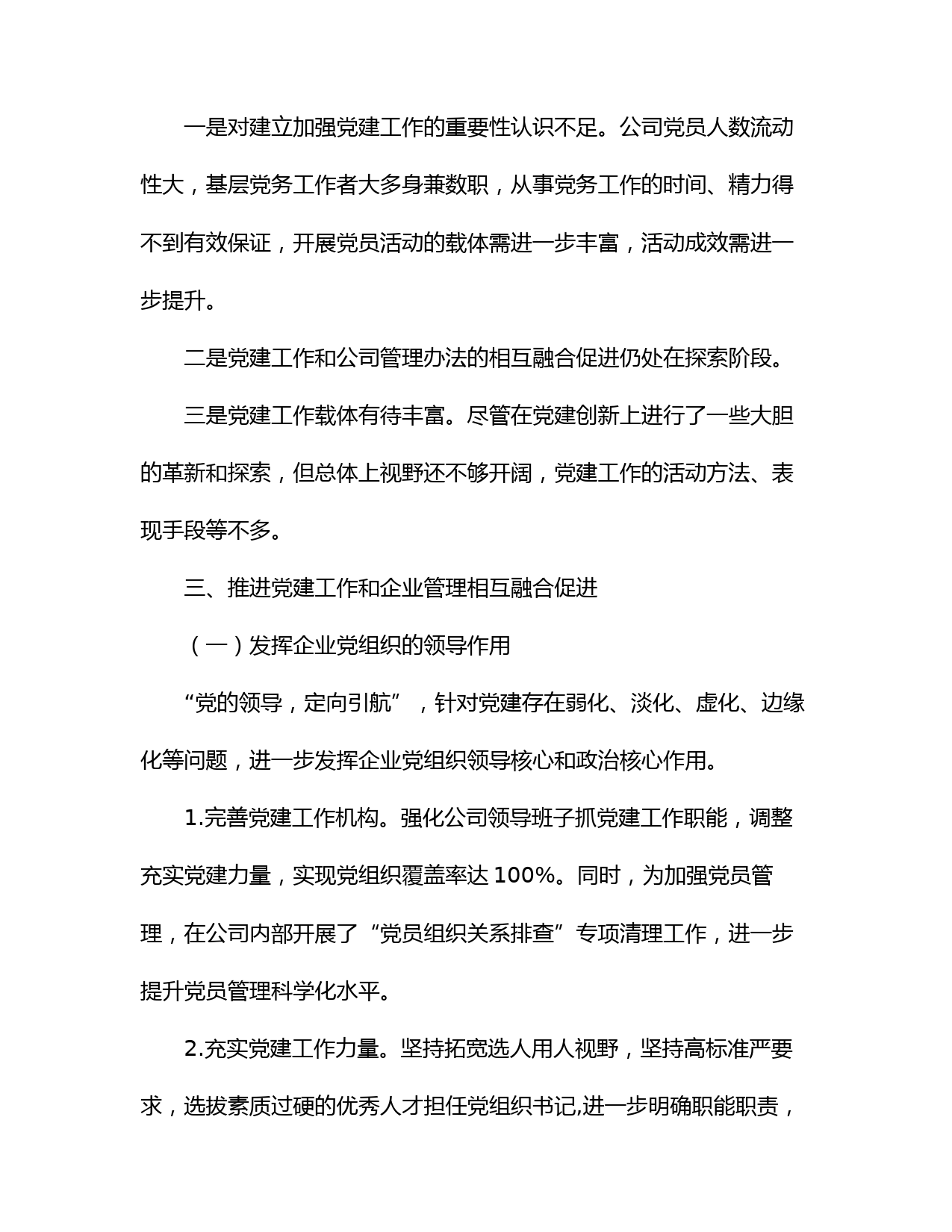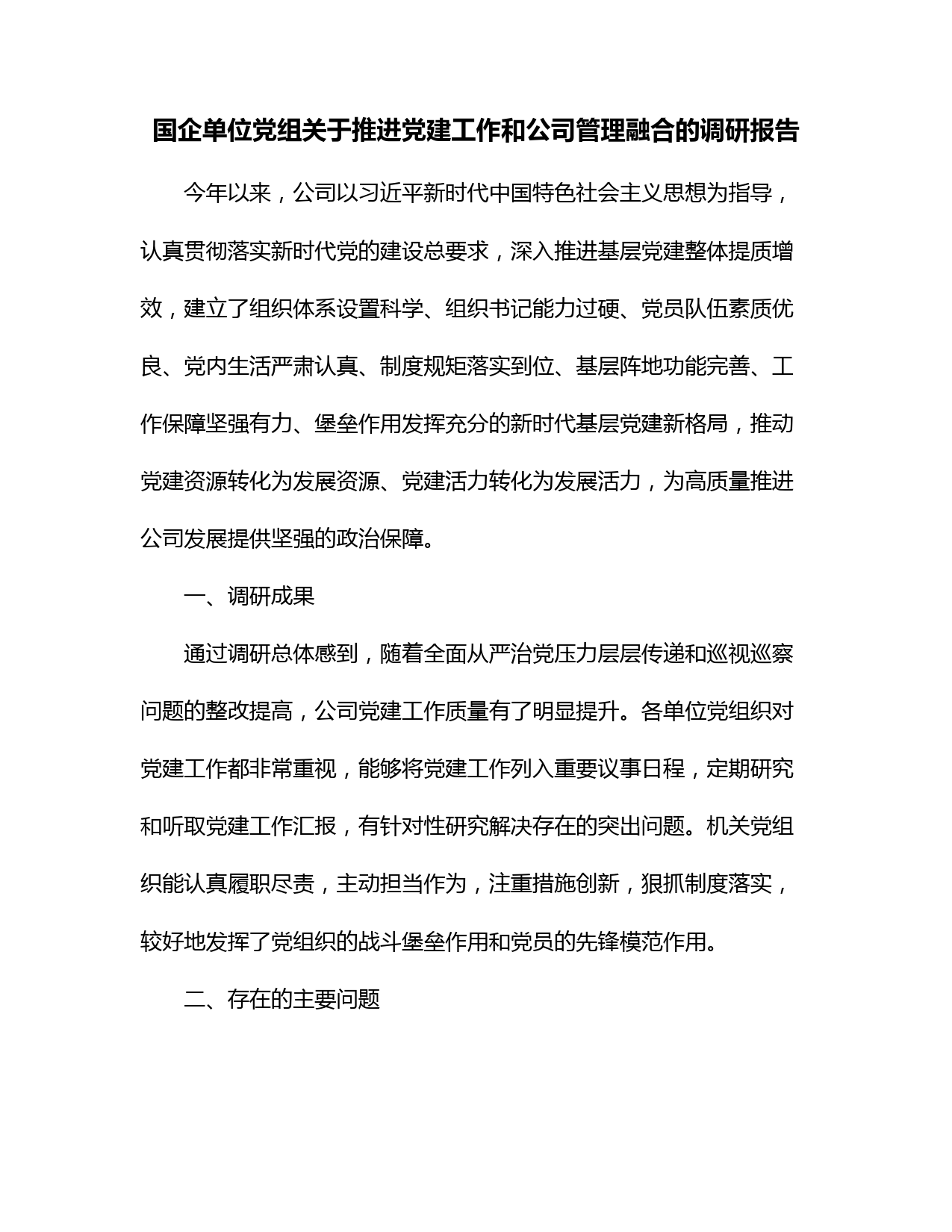 國企單位黨組關于推進黨建工作和公司管理融合的調研報告VIP免費