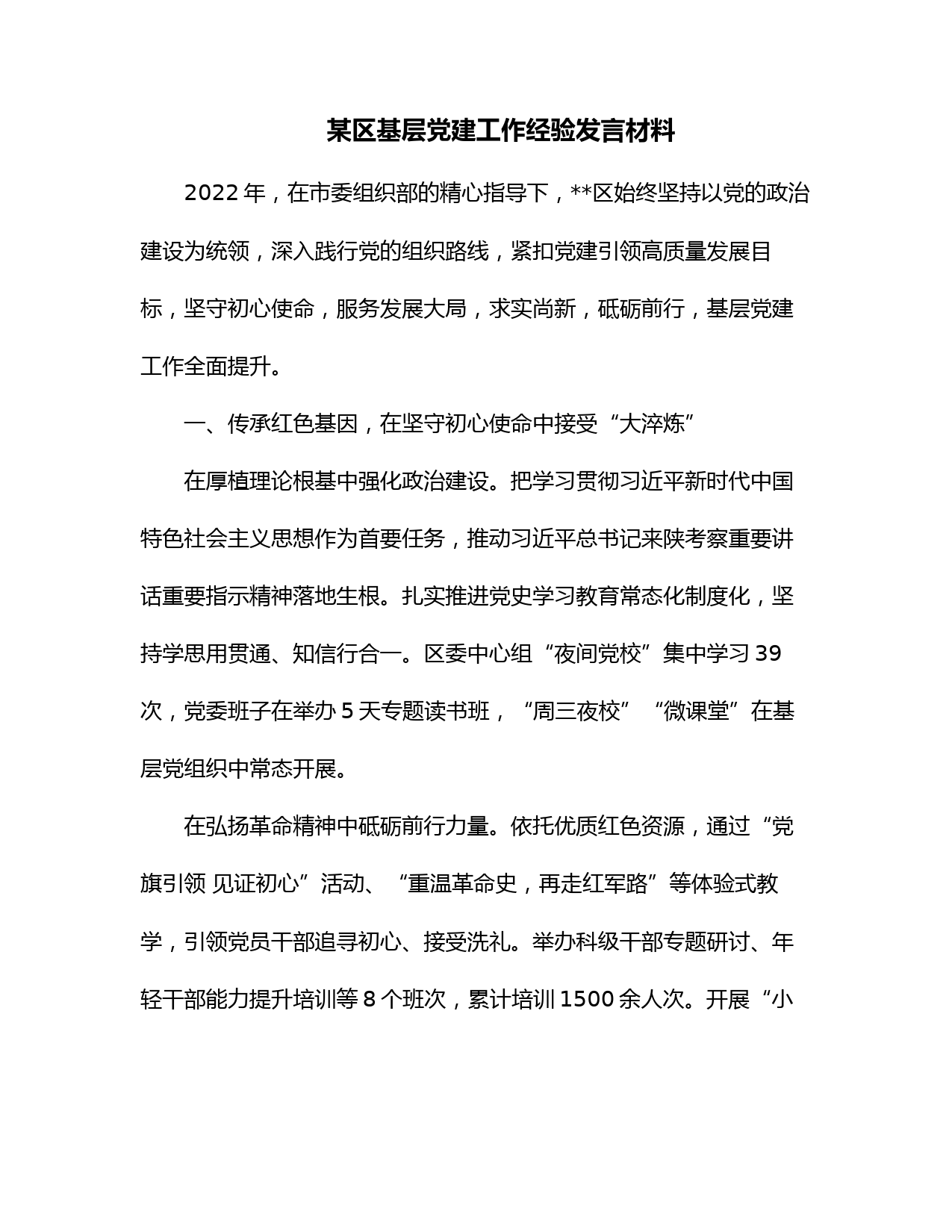 某區(qū)基層黨建工作經(jīng)驗(yàn)發(fā)言材料VIP免費(fèi)