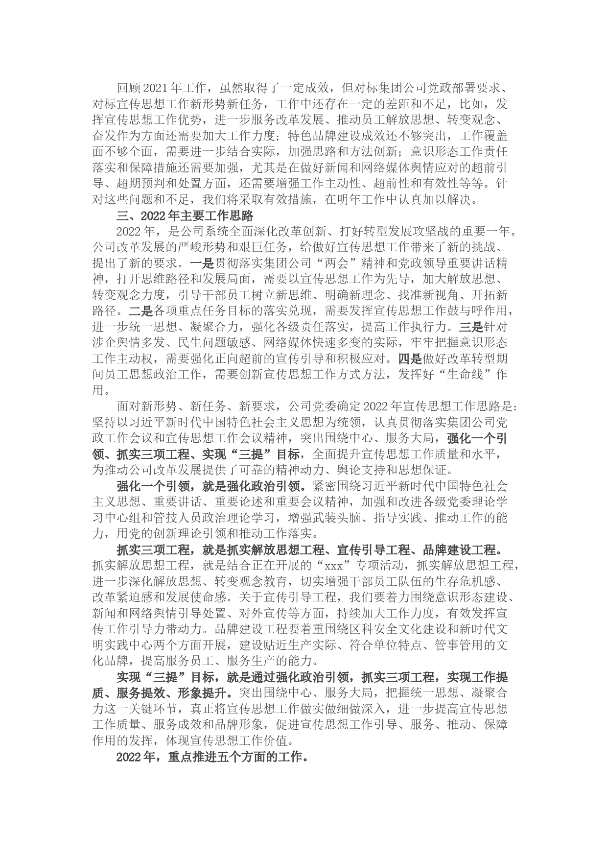 國企2021年宣傳思想工作總結(jié)和2022年工作思路VIP免費