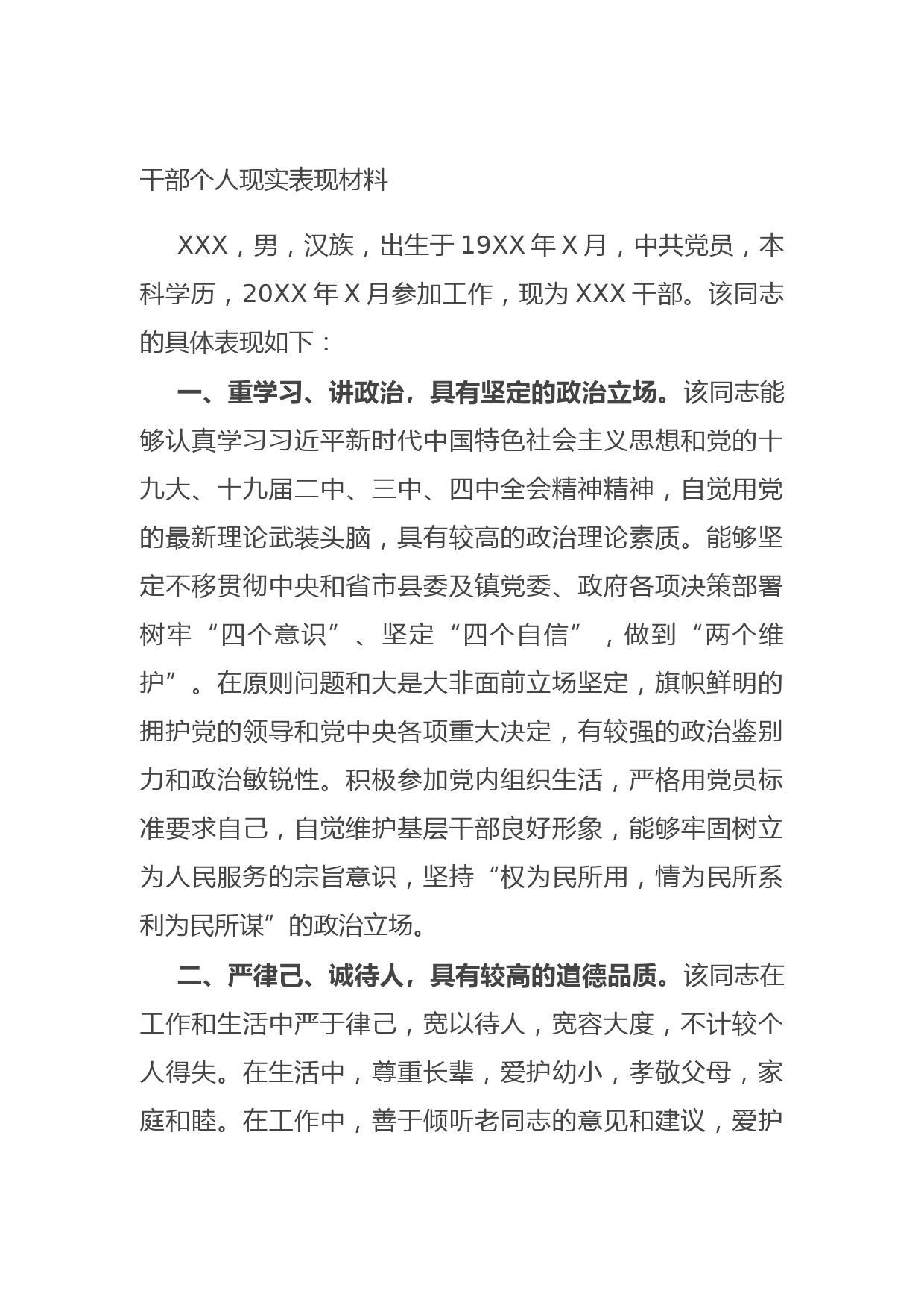 干部個人現(xiàn)實表現(xiàn)材料VIP免費
