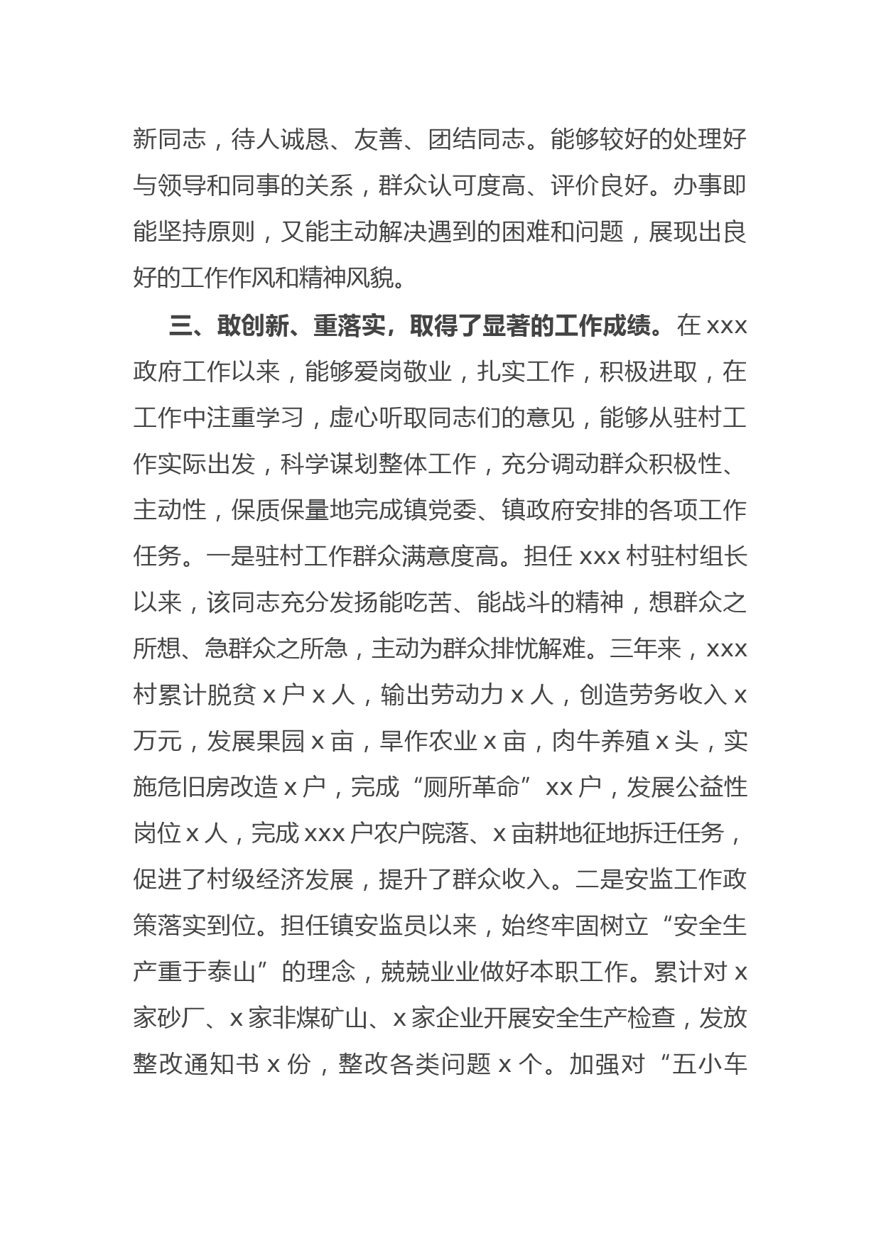 干部個人現(xiàn)實表現(xiàn)材料XXX,男,漢族,出生于19XX年X月,中共黨員,本科學歷,20XX年X月參加工作,現(xiàn)為XXX干部。該同志的具體表現(xiàn)如下:一、重學習、講政治,具有堅定的政治立場。該同志能夠認真學習習近平新時代中國特色社會主義思想和黨的十九大、十九屆二中、三中、四中全會精神精神,自覺用黨的最新理論武裝頭腦,具有較高的政治理論素質(zhì)。能夠堅定不移貫徹中央和省市縣委及鎮(zhèn)黨委、政府各項決策部署樹牢“四個意識”、堅定“四個自信”,做到“兩個維護”。在原則問題和大是大非面前立場堅定,旗幟鮮明的擁護黨的領導和黨中央各項重大決定,有較強的政治鑒別力和政治...