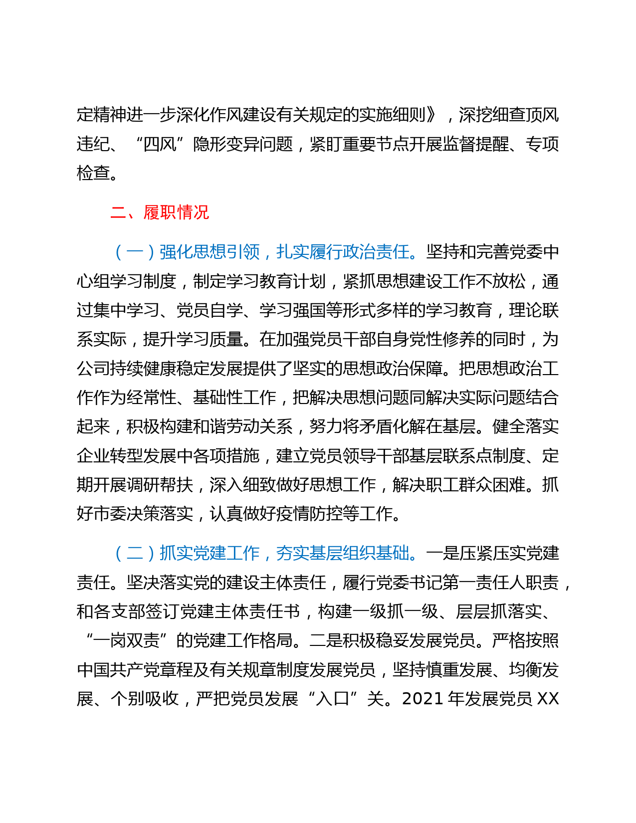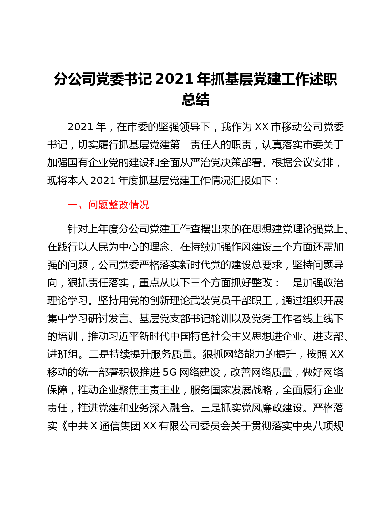 分公司黨委書記2021年抓基層黨建工作述職總結(jié)VIP免費