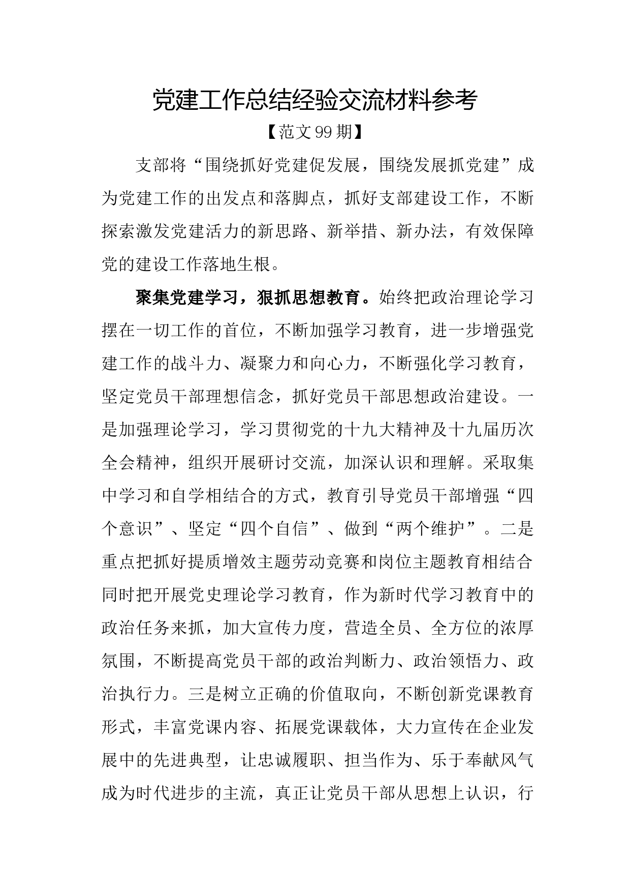 范文99期-黨建工作總結(jié)經(jīng)驗(yàn)交流材料參考VIP免費(fèi)