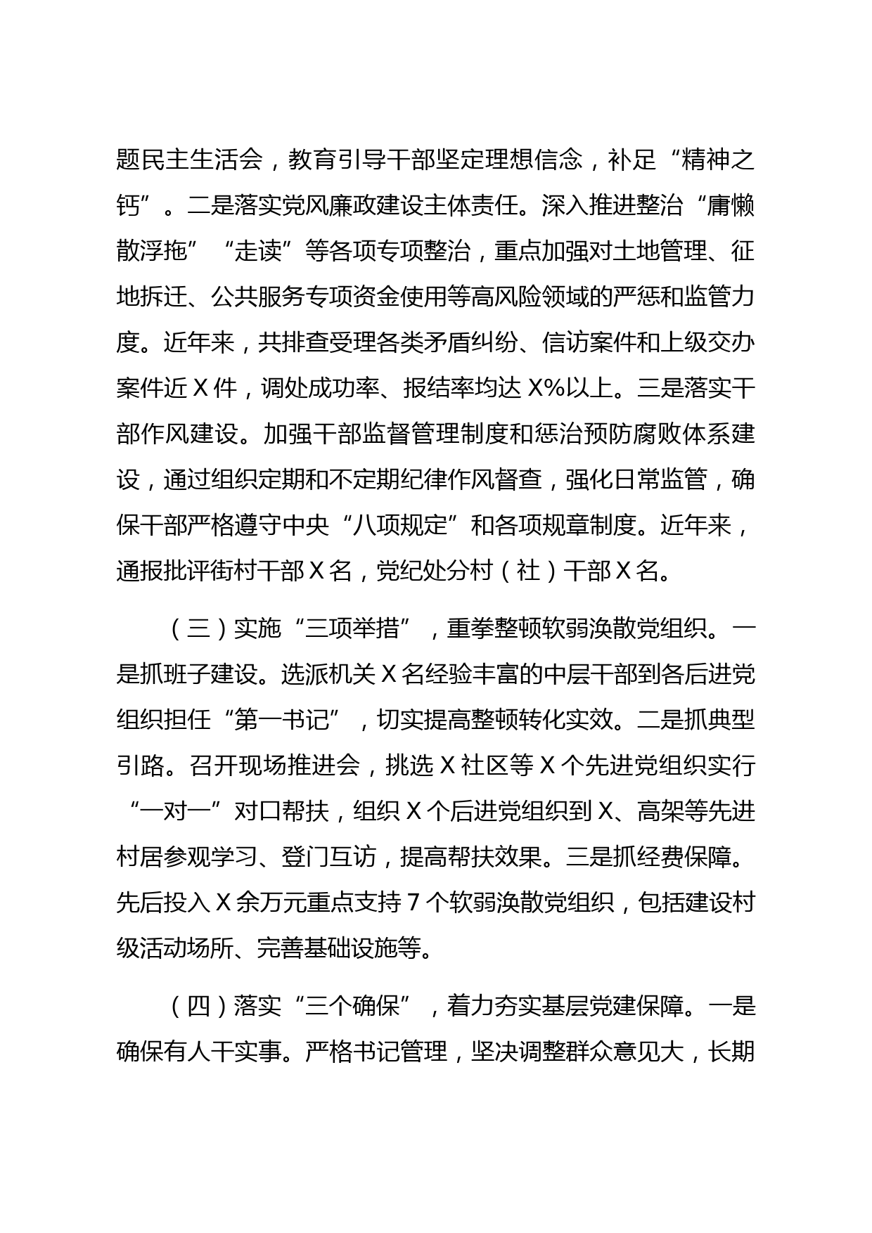 黨支部特色亮點(diǎn)工作總結(jié)匯報(bào)一、近年來黨建工作總體情況(一)突出“三個(gè)注重”,不斷提升服務(wù)群眾的能力。一是注重教育培訓(xùn)。制定年度培訓(xùn)計(jì)劃,通過邀請(qǐng)專家開設(shè)講座、班子成員下基層講黨課、播放教育影片等多種形式對(duì)“兩委”干部、議事會(huì)、監(jiān)委會(huì)成員、全體黨員進(jìn)行培訓(xùn),覆蓋X萬余人次。二是注重選人用人。積極探索對(duì)現(xiàn)任村“兩委”干部的村大生實(shí)行工資報(bào)酬雙軌制、延長(zhǎng)服務(wù)期等激勵(lì)政策;采取“定人定向壓擔(dān)子”培養(yǎng)新模式,努力在轉(zhuǎn)業(yè)軍人、優(yōu)秀企業(yè)家、大學(xué)生志愿者等群體培養(yǎng)、發(fā)掘人才,現(xiàn)有X人已擔(dān)任“兩委”干部。三是注重黨員干部管理。建立健全干部監(jiān)督管...