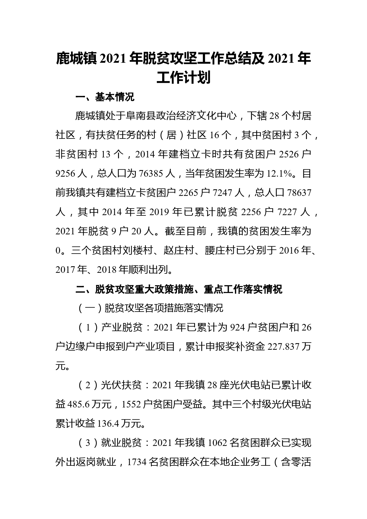 鹿城鎮(zhèn)2021年脫貧攻堅(jiān)工作總結(jié)及2021年工作計(jì)劃VIP免費(fèi)