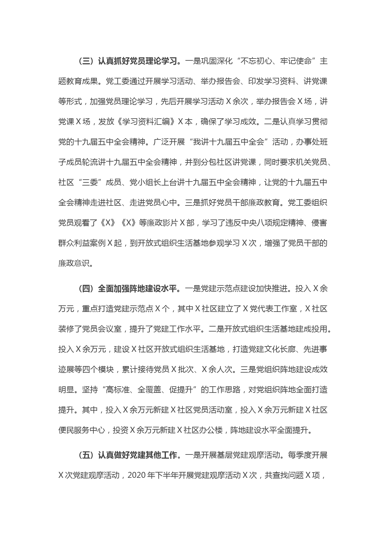 X黨工委書記2020年度抓基層黨建工作述職報告VIP免費