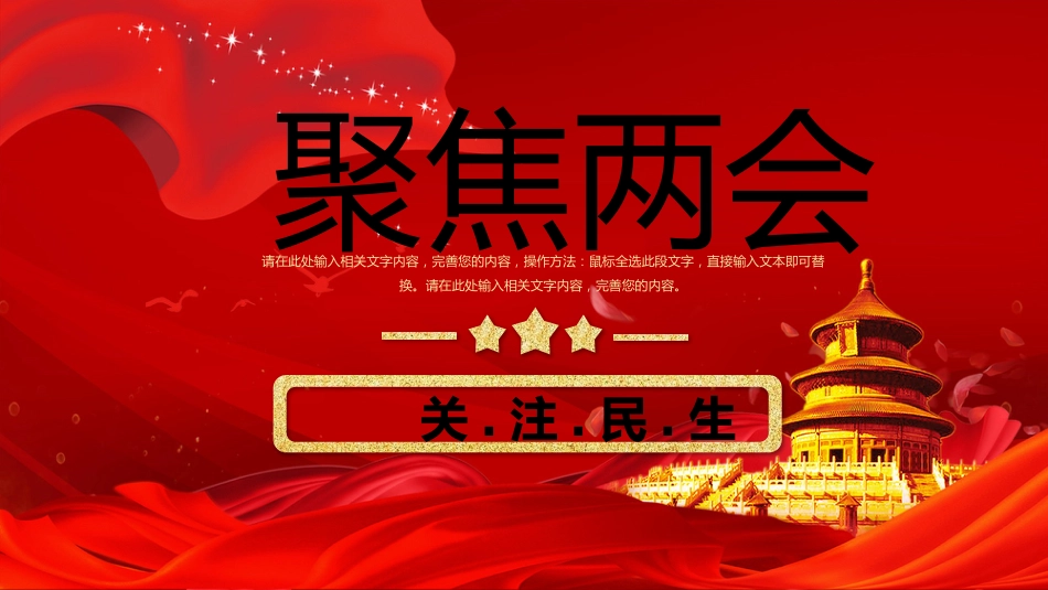 關.注.民.生請在此處輸入相關文字內容,完善您的內容,操作方法:鼠標全選此段文字,直接輸入文本即可替換。請在此處輸入相關文字內容,完善您的內容。聚焦兩會前言請在此處輸入相關文字內容,完善您的內容,操作方法:鼠標全選此段文字,直接輸入文本即可替換。請在此處輸入相關文字內容,完善您的內容。請在此處輸入相關文字內容,完善您的內容,操作方法:鼠標全選此段文字,直接輸入文本即可替換。請在此處輸入相關文字內容,完善您的內容。目錄基本概述幾大看點工作報告123年終匯總4基本概述01添加標題?請在此處輸入相關文字內容,完善您的內容,操作方法:鼠標全...