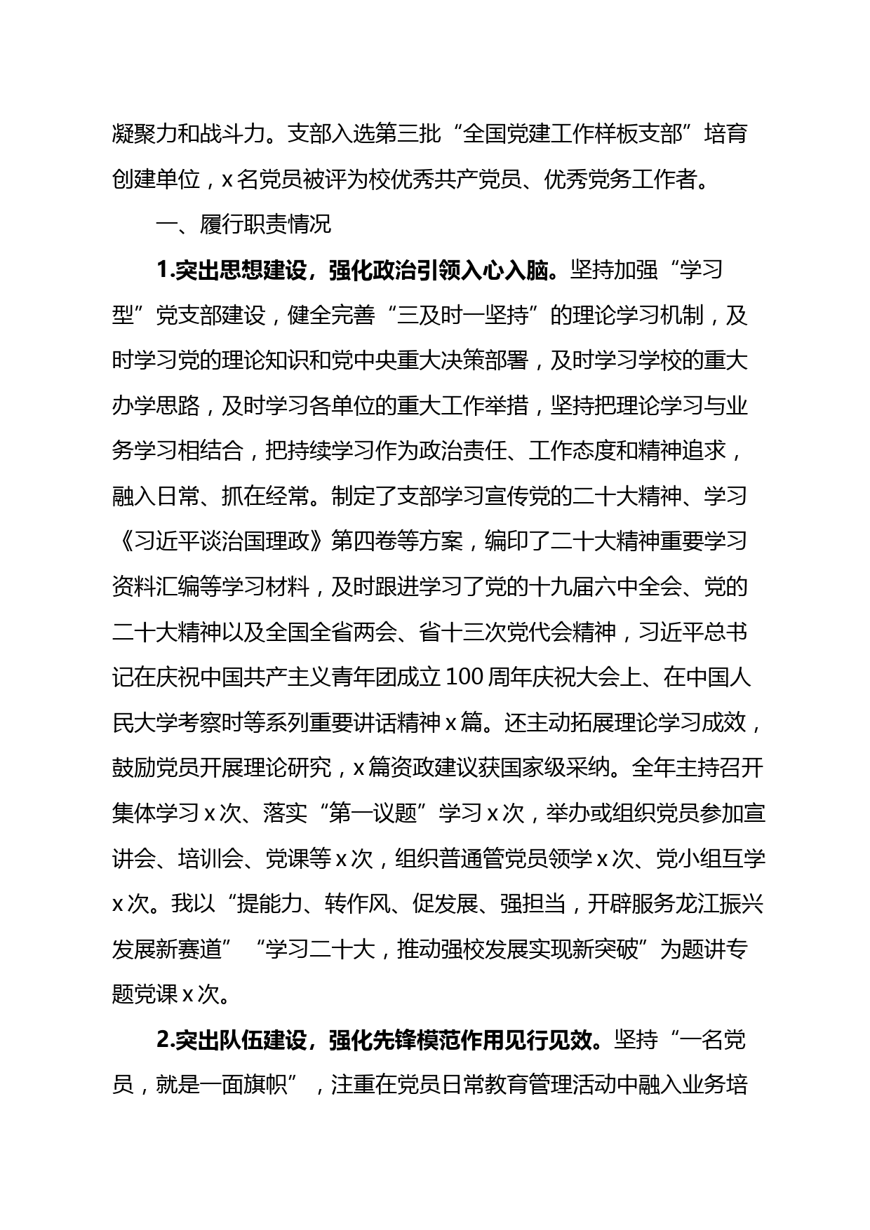 高校各黨支部書記2022年抓基層黨建工作述職報(bào)告匯編VIP免費(fèi)