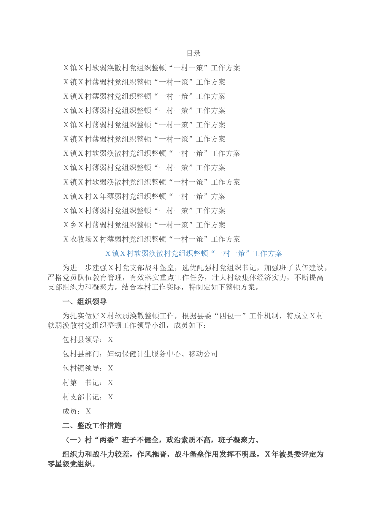 目錄X鎮(zhèn)X村軟弱渙散村黨組織整頓“一村一策”工作方案X鎮(zhèn)X村薄弱村黨組織整頓“一村一策”工作方案X鎮(zhèn)X村薄弱村黨組織整頓“一村一策”工作方案X鎮(zhèn)X村薄弱村黨組織整頓“一村一策”工作方案X鎮(zhèn)X村薄弱村黨組織整頓“一村一策”工作方案X鎮(zhèn)X村薄弱村黨組織整頓“一村一策”工作方案X鎮(zhèn)X村軟弱渙散村黨組織整頓“一村一策”工作方案X鎮(zhèn)X村薄弱村黨組織整頓“一村一策”工作方案X鎮(zhèn)X村軟弱渙散村黨組織整頓“一村一策”工作方案X鎮(zhèn)X村X年薄弱村黨組織整頓“一村一策”方案X鎮(zhèn)X村薄弱村黨組織整頓“一村一策”工作方案X鄉(xiāng)X村薄弱村黨組織整頓“一村...