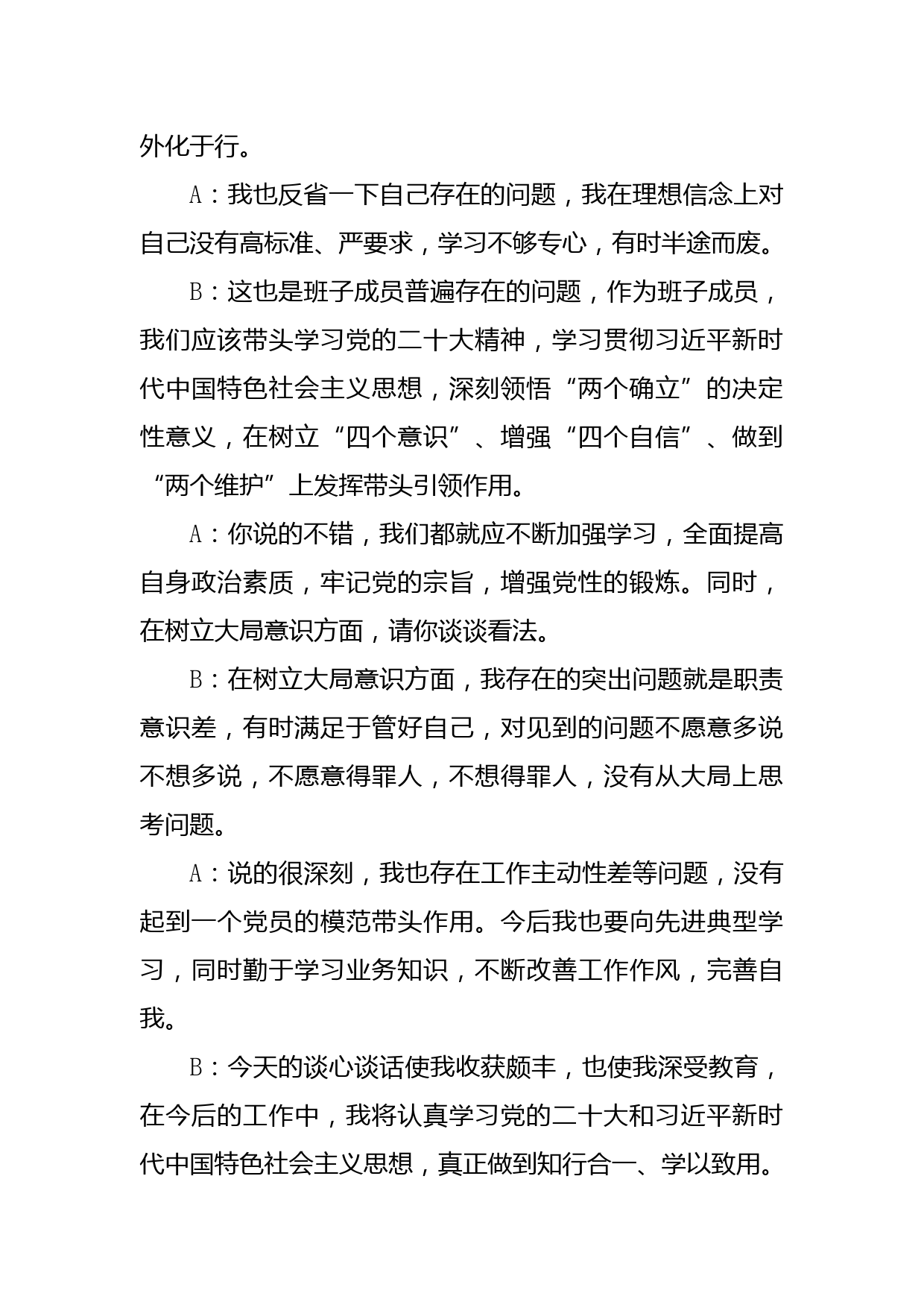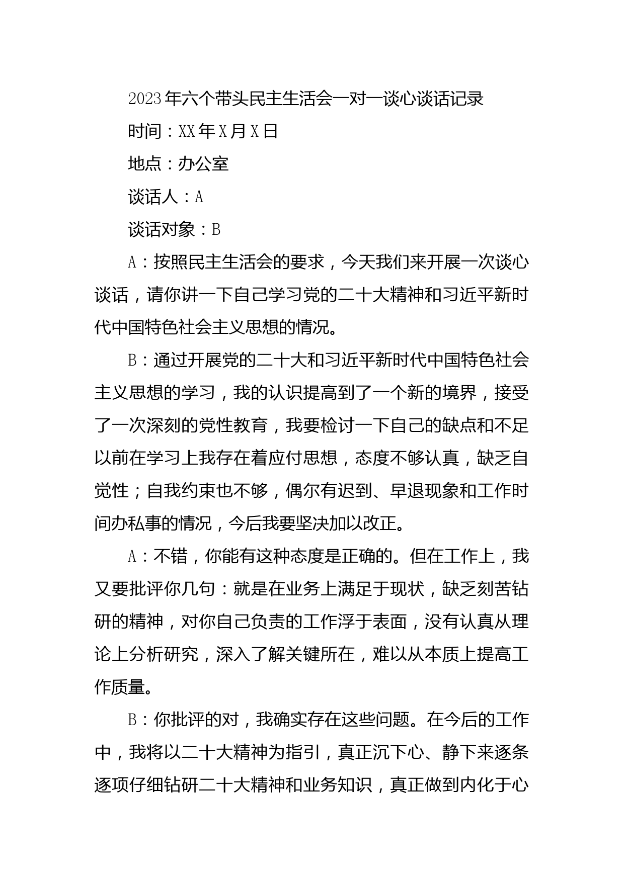 2023年六個(gè)帶頭民主生活會(huì)一對(duì)一談心談話記錄VIP免費(fèi)