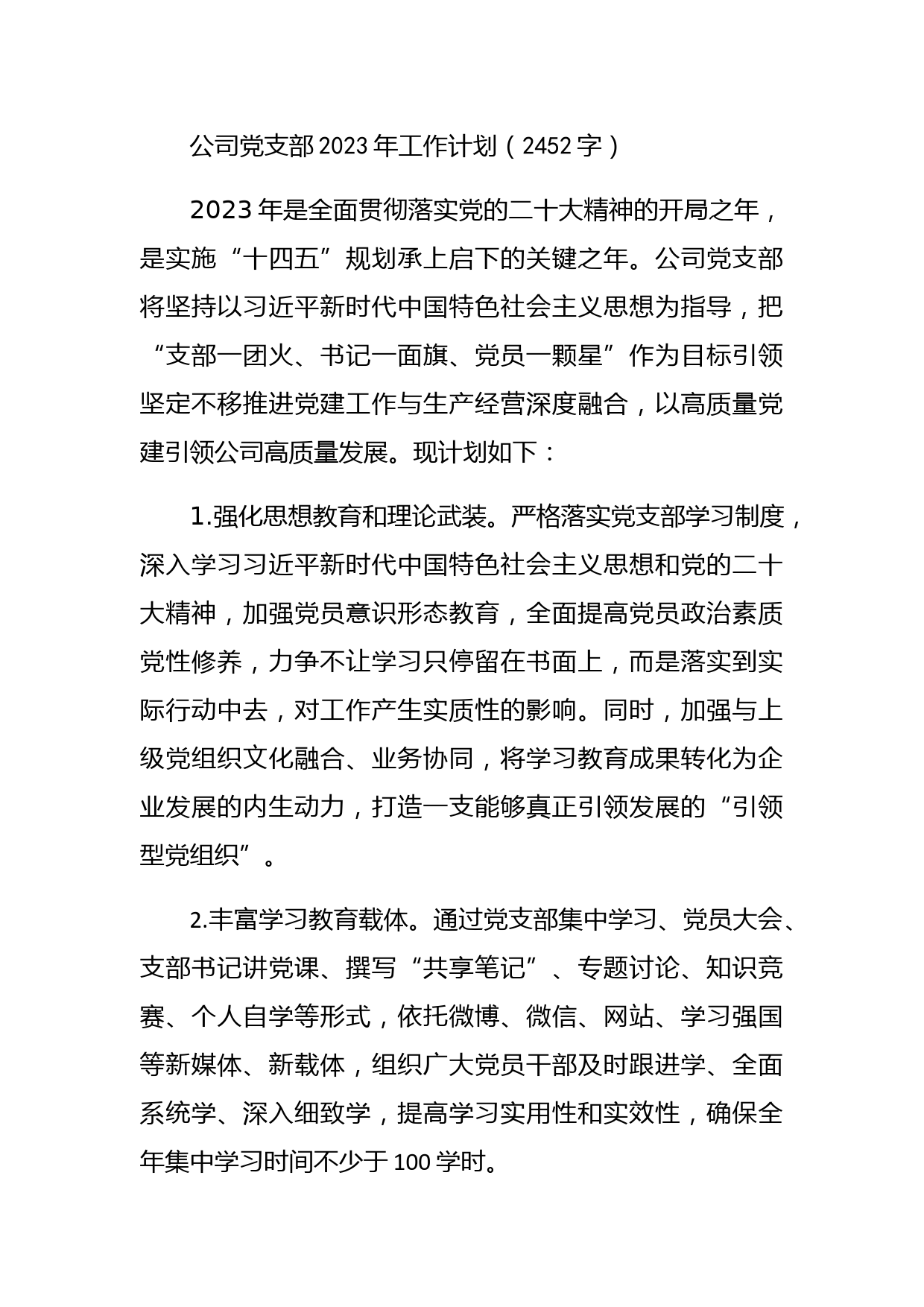 國企黨支部2023年工作計劃要點VIP免費
