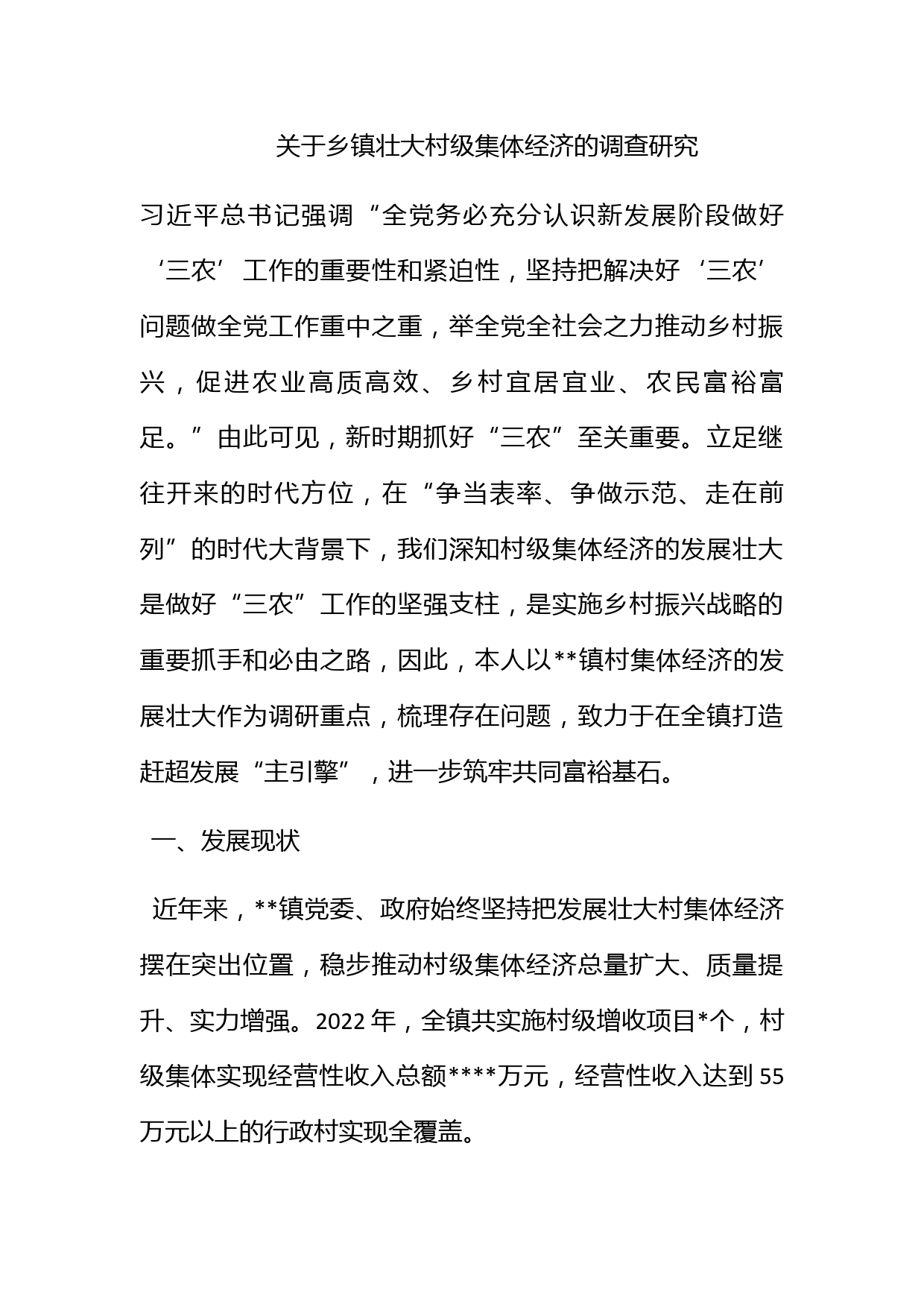 關(guān)于鄉(xiāng)鎮(zhèn)壯大村級(jí)集體經(jīng)濟(jì)的調(diào)查研究VIP免費(fèi)