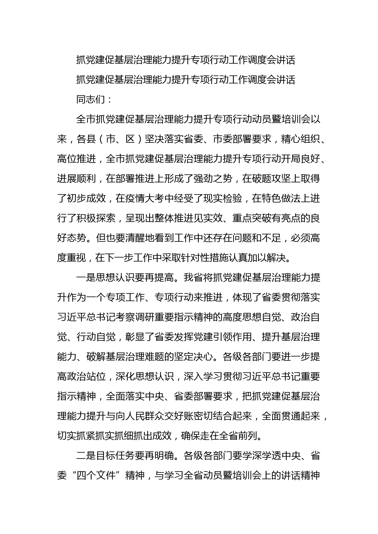 抓黨建促基層治理能力提升專項(xiàng)行動(dòng)工作調(diào)度會(huì)講話VIP免費(fèi)