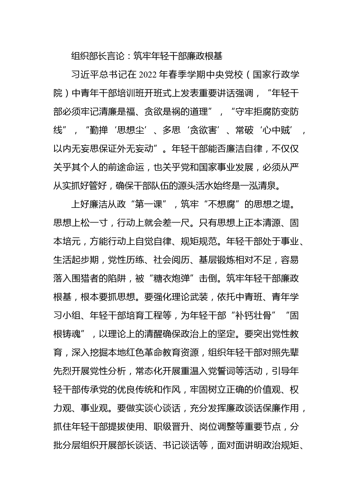 組織部長言論:筑牢年輕干部廉政根基VIP免費