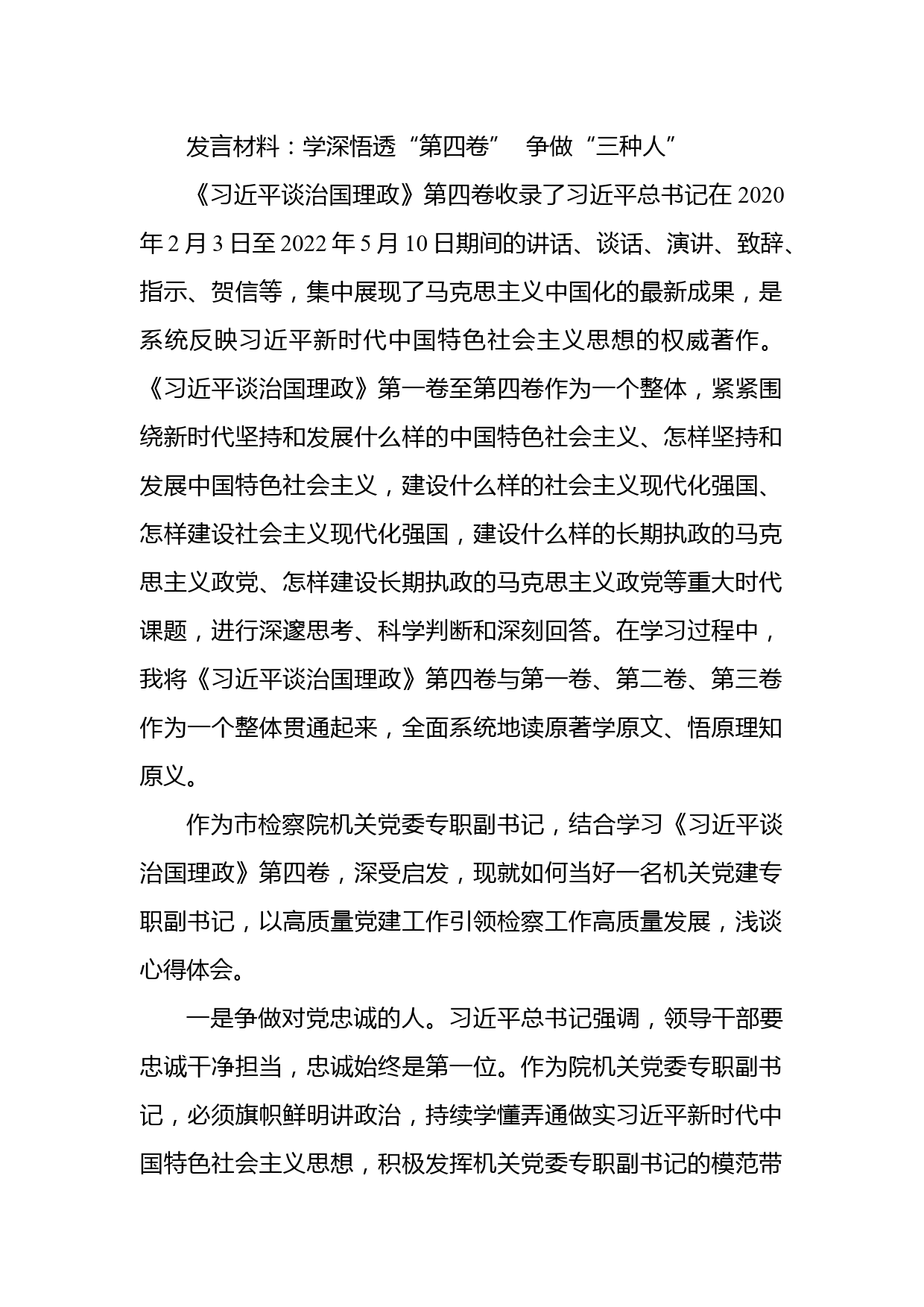 發(fā)言材料:學(xué)深悟透“第四卷” 爭做“三種人”VIP免費