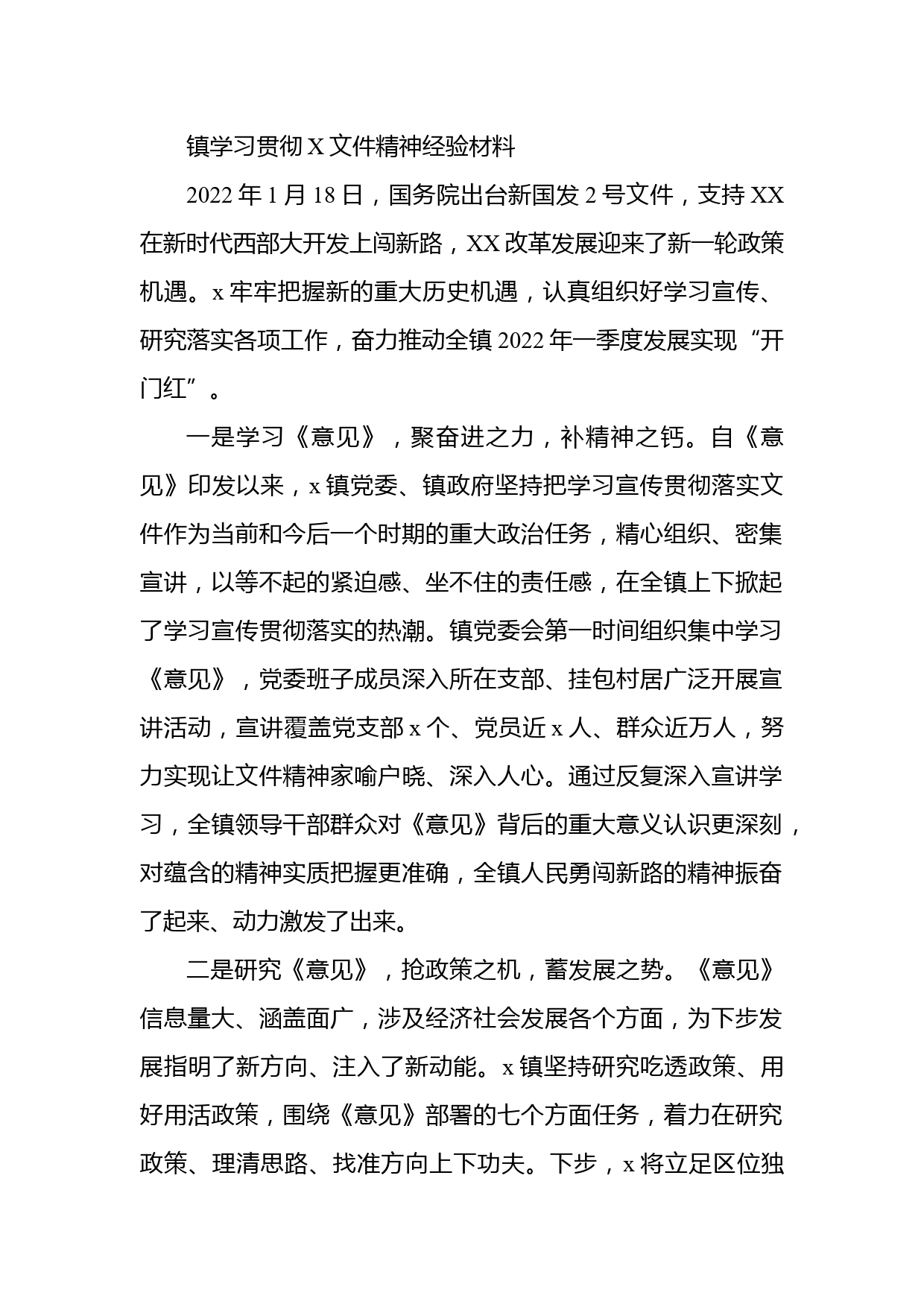 鎮(zhèn)學習貫徹X文件精神經驗材料VIP免費