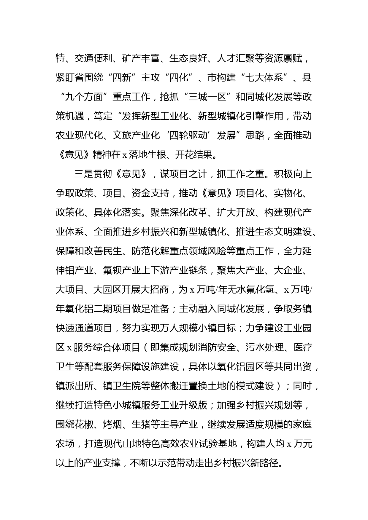 鎮(zhèn)學習貫徹X文件精神經驗材料2022年1月18日,國務院出臺新國發(fā)2號文件,支持XX在新時代西部大開發(fā)上闖新路,XX改革發(fā)展迎來了新一輪政策機遇。x牢牢把握新的重大歷史機遇,認真組織好學習宣傳、研究落實各項工作,奮力推動全鎮(zhèn)2022年一季度發(fā)展實現(xiàn)“開門紅”。一是學習《意見》,聚奮進之力,補精神之鈣。自《意見》印發(fā)以來,x鎮(zhèn)黨委、鎮(zhèn)政府堅持把學習宣傳貫徹落實文件作為當前和今后一個時期的重大政治任務,精心組織、密集宣講,以等不起的緊迫感、坐不住的責任感,在全鎮(zhèn)上下掀起了學習宣傳貫徹落實的熱潮。鎮(zhèn)黨委會第一時間組織集中學習《意見》,黨委班子成員深...