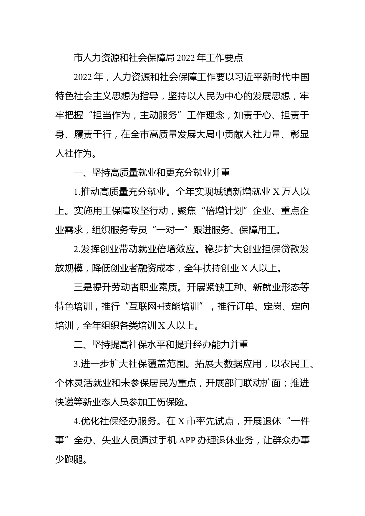 市人力資源和社會(huì)保障局2022年工作要點(diǎn)VIP免費(fèi)