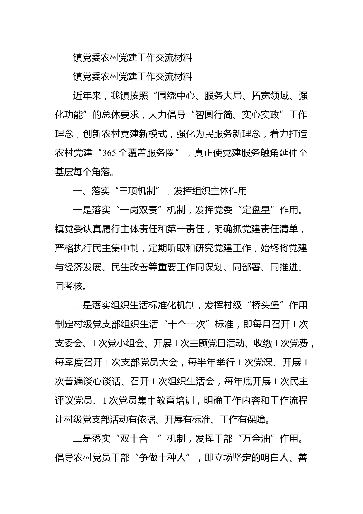 鎮(zhèn)黨委農(nóng)村黨建工作交流材料VIP免費(fèi)