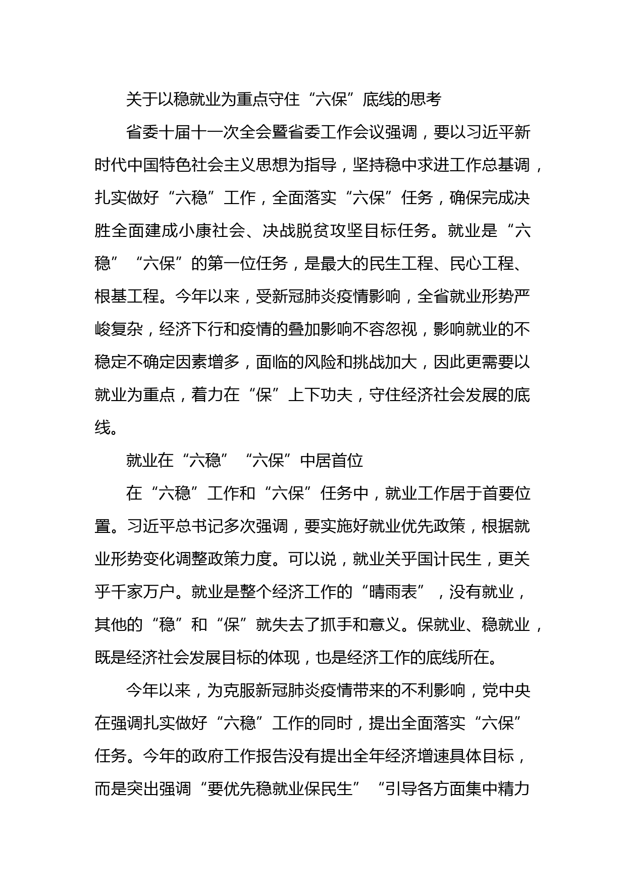 關(guān)于以穩(wěn)就業(yè)為重點(diǎn)守住“六?!钡拙€的思考VIP免費(fèi)