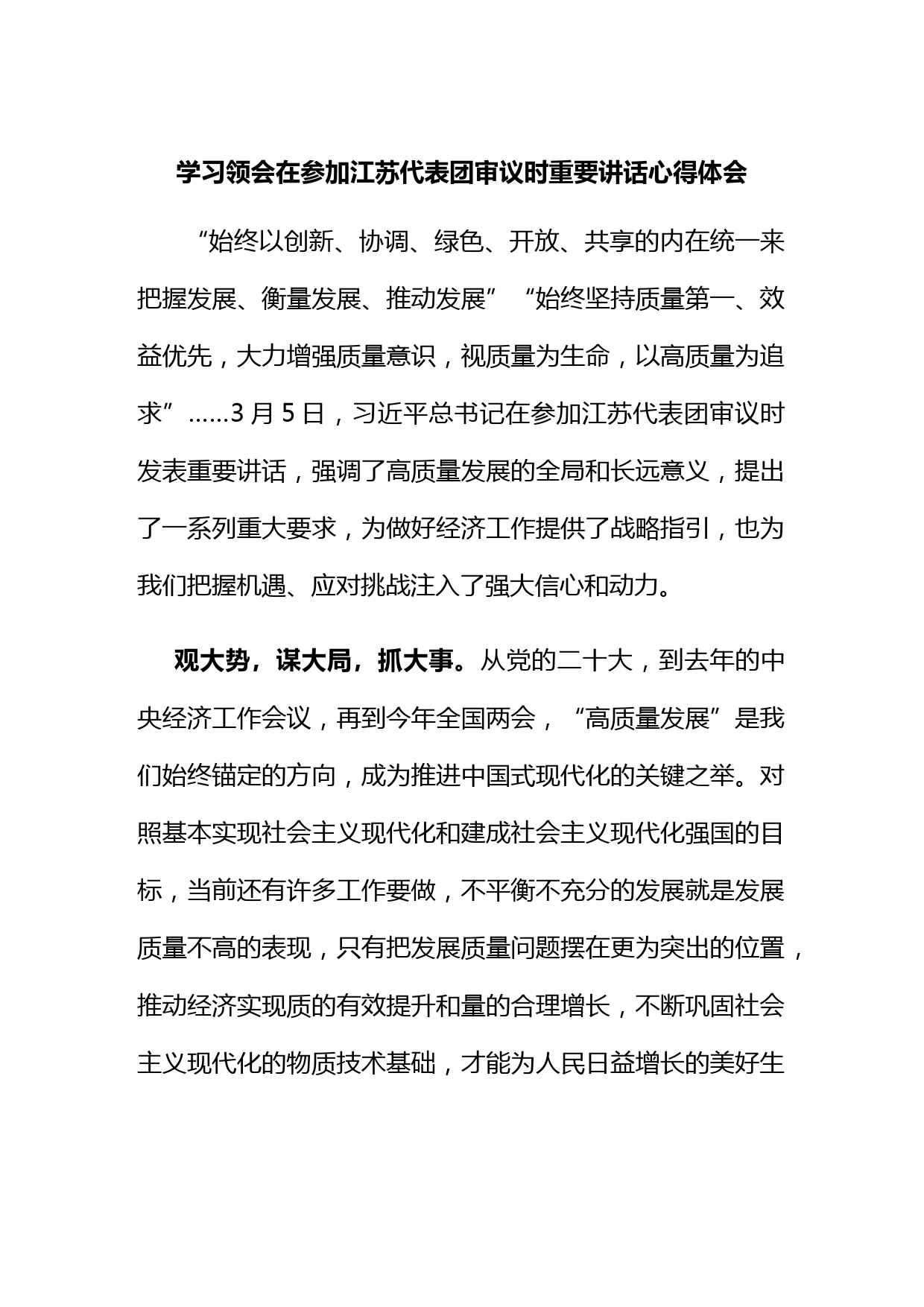 (新)學習領會在參加江蘇代表團審議時重要講話心得體會VIP免費
