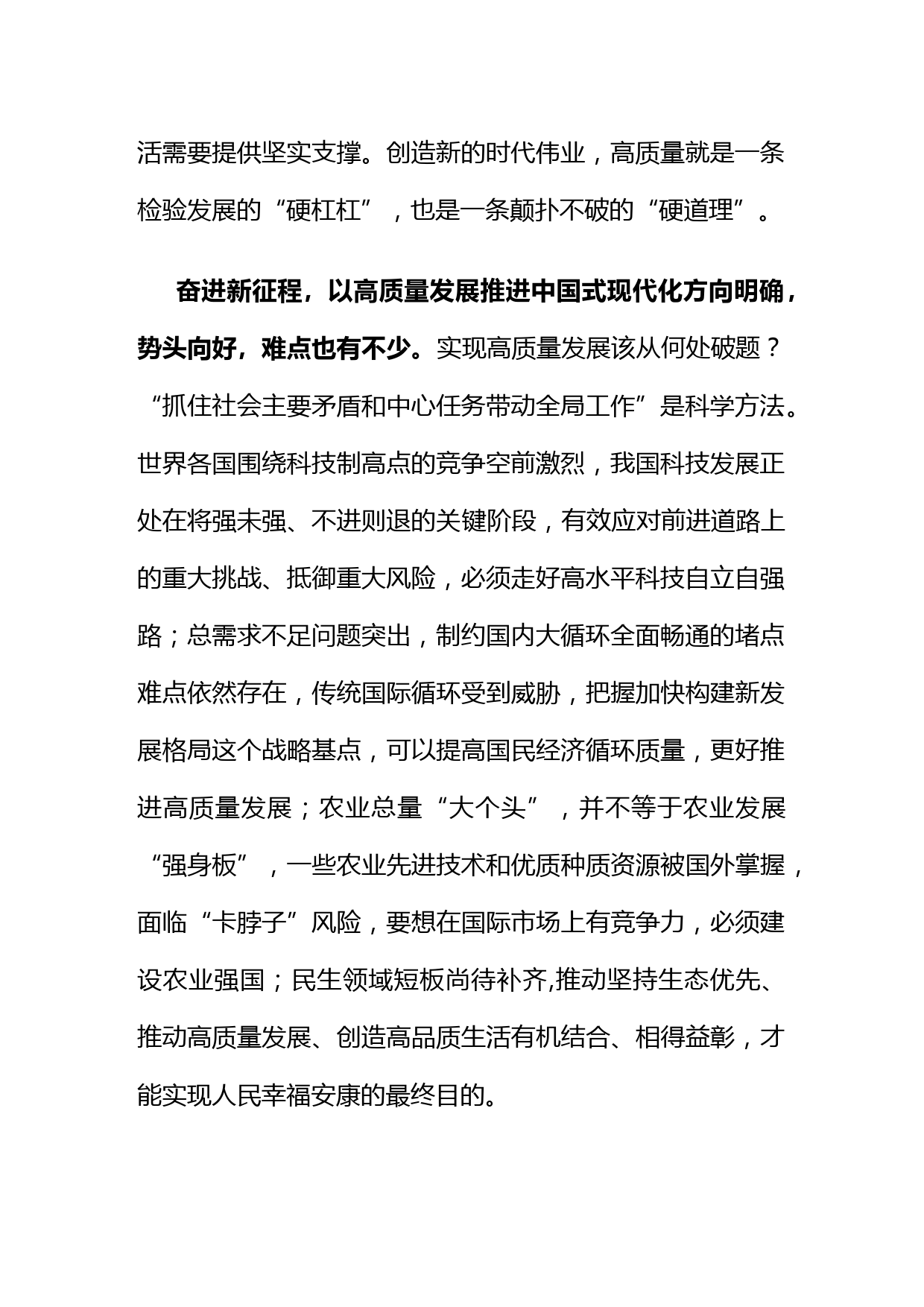 學習領會在參加江蘇代表團審議時重要講話心得體會“始終以創(chuàng)新、協(xié)調(diào)、綠色、開放、共享的內(nèi)在統(tǒng)一來把握發(fā)展、衡量發(fā)展、推動發(fā)展”“始終堅持質(zhì)量第一、效益優(yōu)先,大力增強質(zhì)量意識,視質(zhì)量為生命,以高質(zhì)量為追求”……3月5日,習近平總書記在參加江蘇代表團審議時發(fā)表重要講話,強調(diào)了高質(zhì)量發(fā)展的全局和長遠意義,提出了一系列重大要求,為做好經(jīng)濟工作提供了戰(zhàn)略指引,也為我們把握機遇、應對挑戰(zhàn)注入了強大信心和動力。觀大勢,謀大局,抓大事。從黨的二十大,到去年的中央經(jīng)濟工作會議,再到今年全國兩會,“高質(zhì)量發(fā)展”是我們始終錨定的方向,成為推進中國式現(xiàn)...