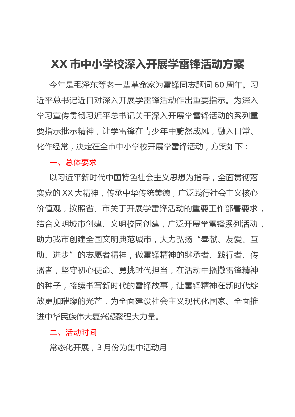 XX市中小學(xué)校深入開展學(xué)雷鋒活動方案VIP免費