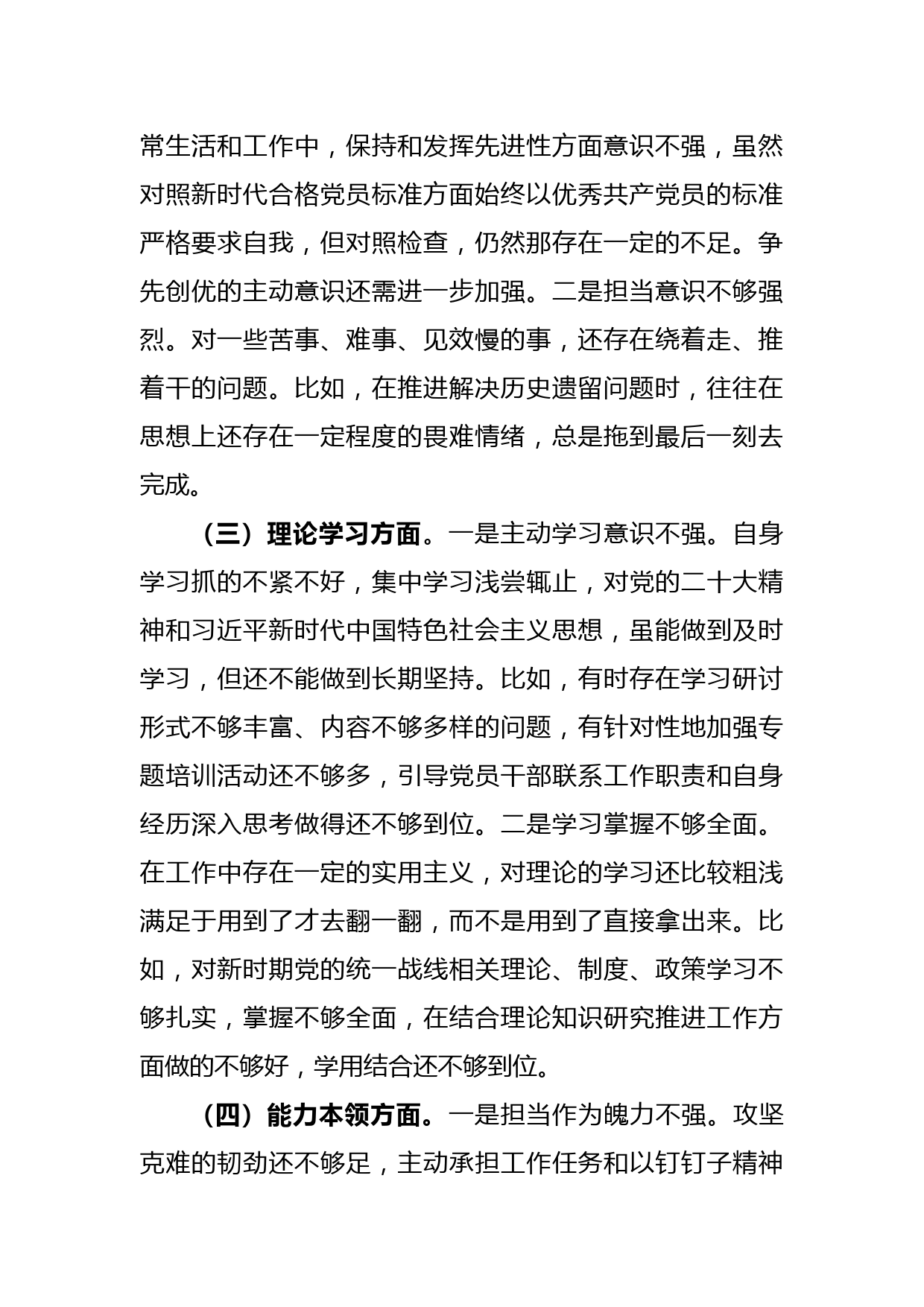 2022年度對(duì)照六個(gè)方面?zhèn)€人自查發(fā)言提綱根據(jù)會(huì)議安排,結(jié)合自身思想和工作實(shí)際,現(xiàn)檢視剖析如下。一、存在的突出問題(一)政治信仰方面。一是政治領(lǐng)悟力不夠強(qiáng)。雖然能夠認(rèn)真學(xué)習(xí)習(xí)近平新時(shí)代中國特色社會(huì)主義思想,但對(duì)一些最新的政治理論,存在囫圇吞棗、理解不深不透的問題。比如,在“兩個(gè)確立”對(duì)推進(jìn)新時(shí)代黨和國家事業(yè)發(fā)展、推進(jìn)中華民族偉大復(fù)興歷史進(jìn)程的決定性作用方面理解不夠深入,對(duì)“兩個(gè)確立”的科學(xué)內(nèi)涵把握得不夠全面深入。二是政治敏銳性有待加強(qiáng)。對(duì)新形勢(shì)下如何更好地維護(hù)黨的形象權(quán)威、宣傳黨的政策主張、鞏固黨的執(zhí)政基礎(chǔ)等思考研究不深,對(duì)意識(shí)形...