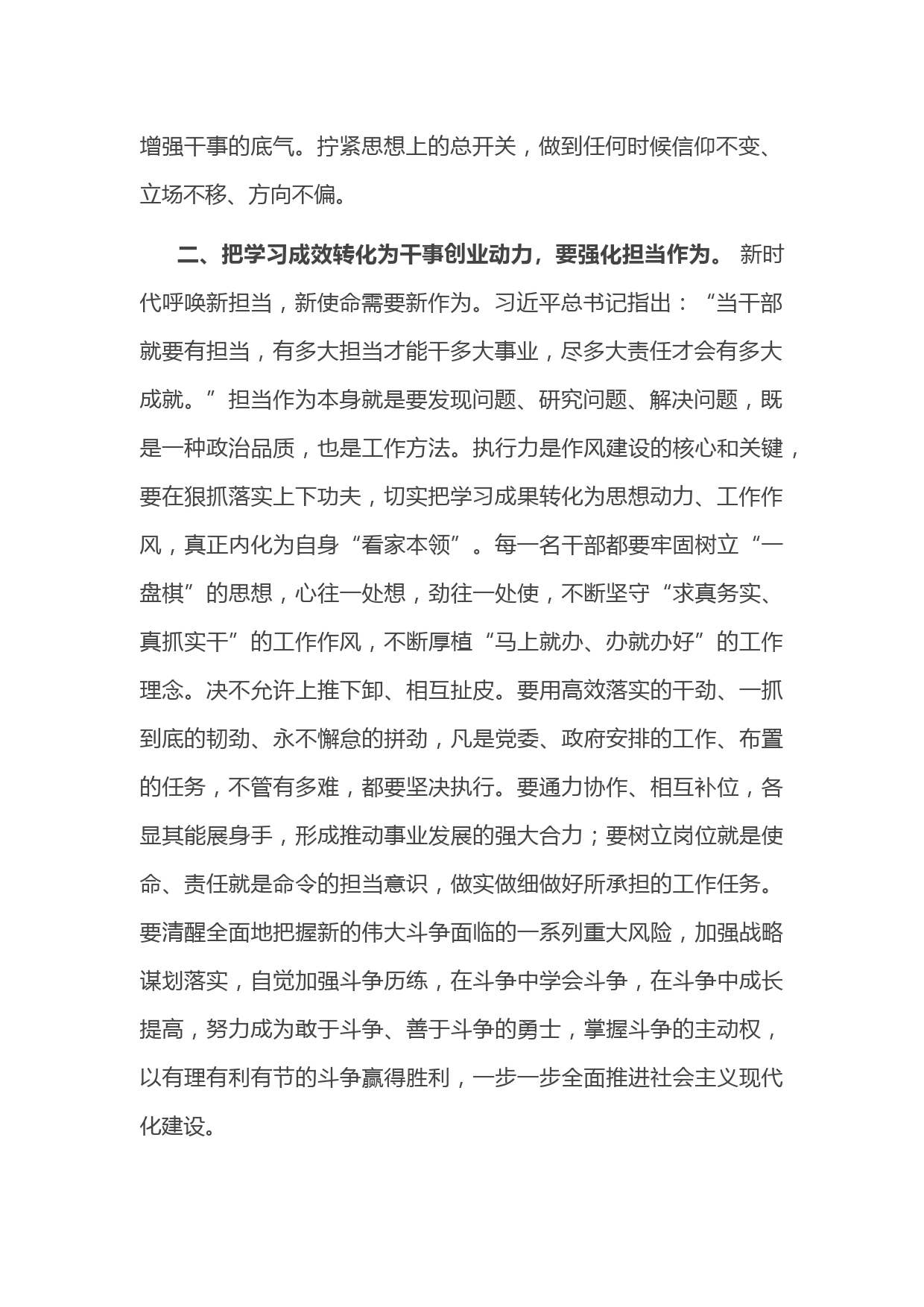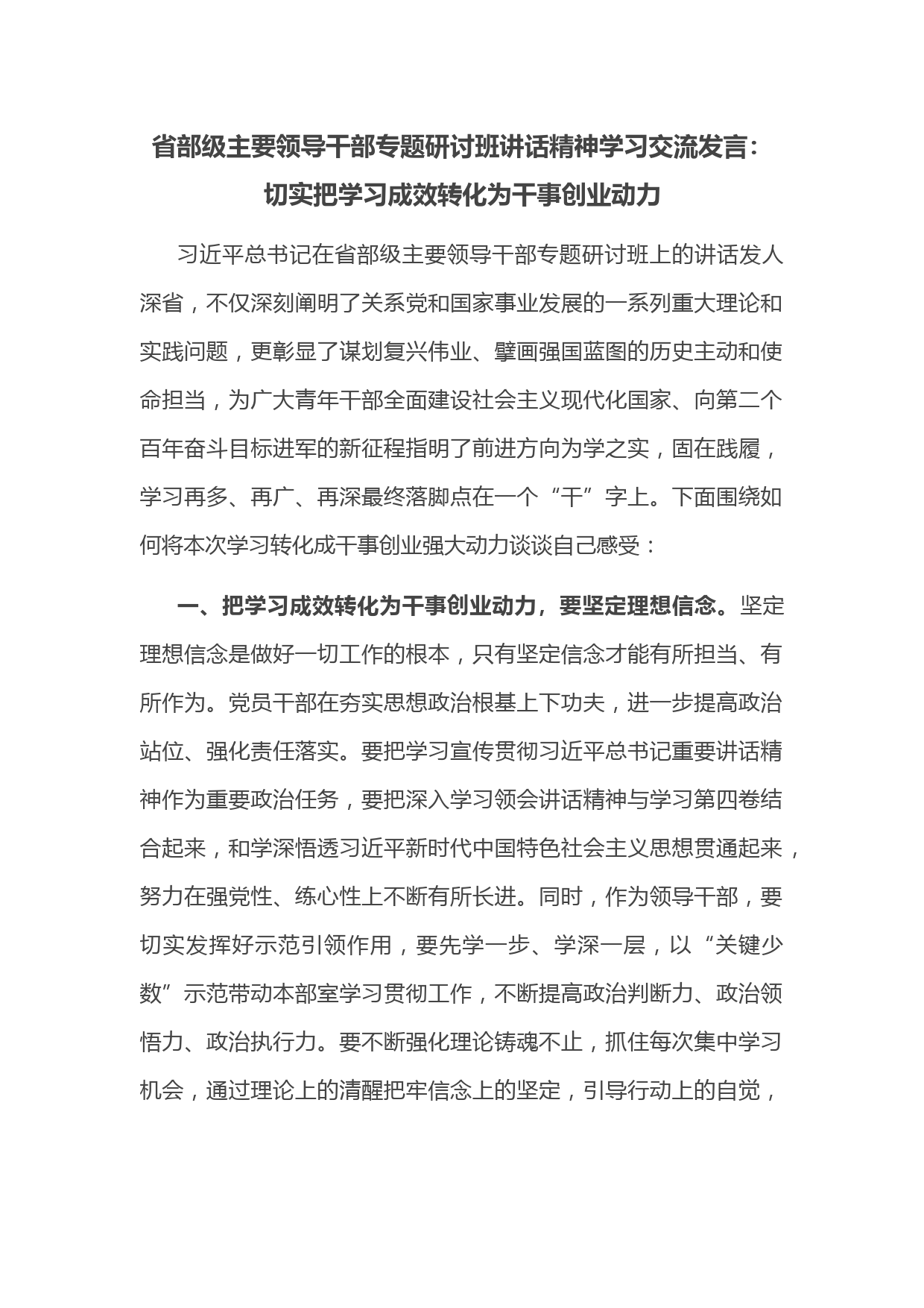 省部級主要領(lǐng)導(dǎo)干部專題研討班講話精神學(xué)習(xí)交流發(fā)言:切實把學(xué)習(xí)成效轉(zhuǎn)化為干事創(chuàng)業(yè)動力VIP免費