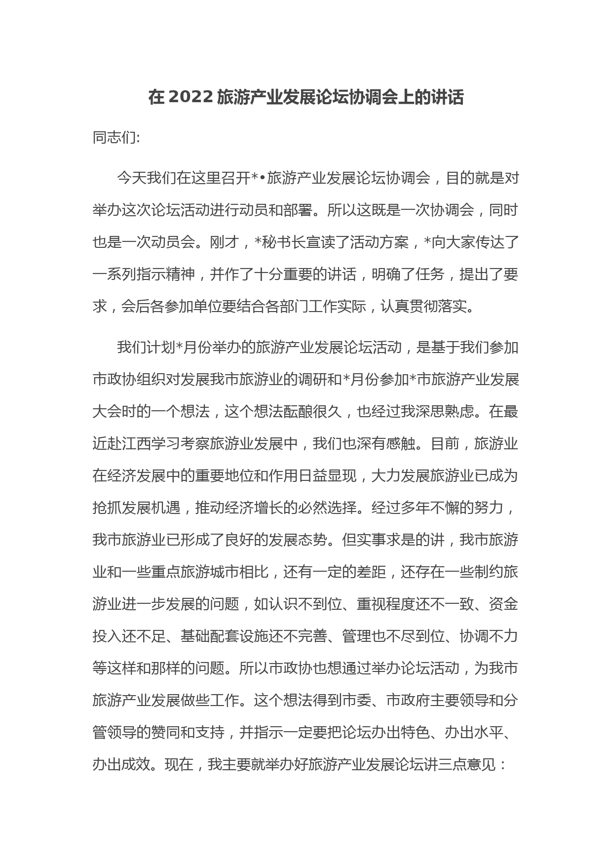 在2022旅游產(chǎn)業(yè)發(fā)展論壇協(xié)調(diào)會上的講話VIP免費