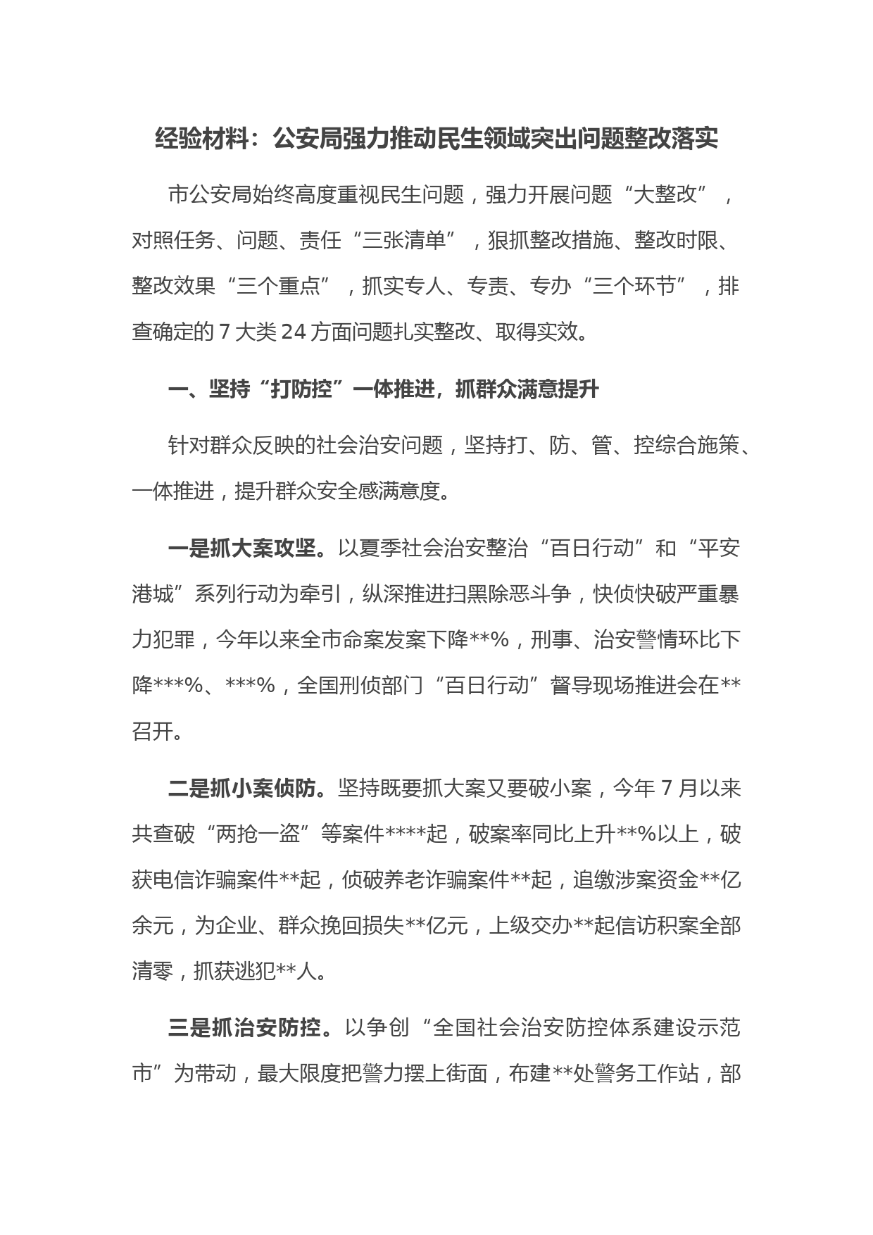 經(jīng)驗(yàn)材料:公安局強(qiáng)力推動(dòng)民生領(lǐng)域突出問(wèn)題整改落實(shí)VIP免費(fèi)