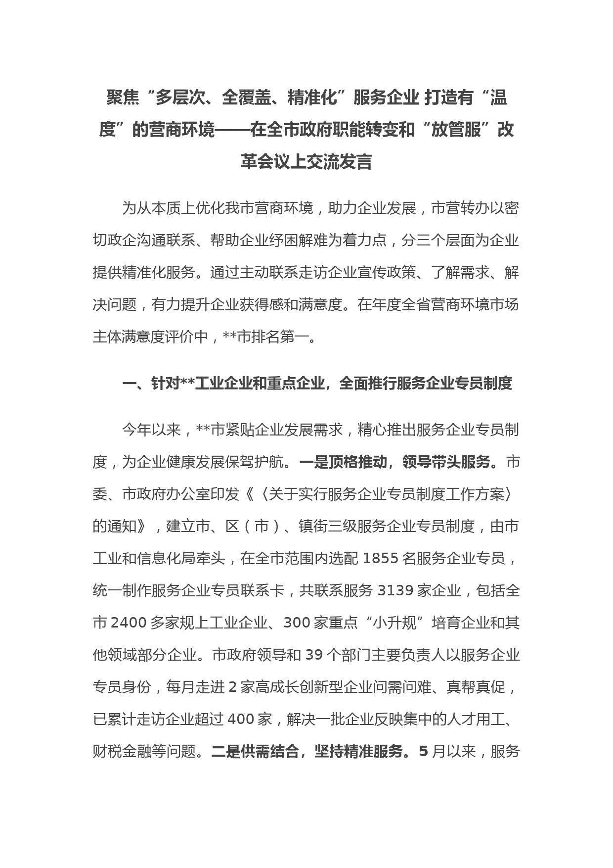 聚焦“多層次、全覆蓋、精準(zhǔn)化”服務(wù)企業(yè) 打造有“溫度”的營(yíng)商環(huán)境——在全市政府職能轉(zhuǎn)變和“放管服”改革會(huì)議上交流發(fā)言VIP免費(fèi)