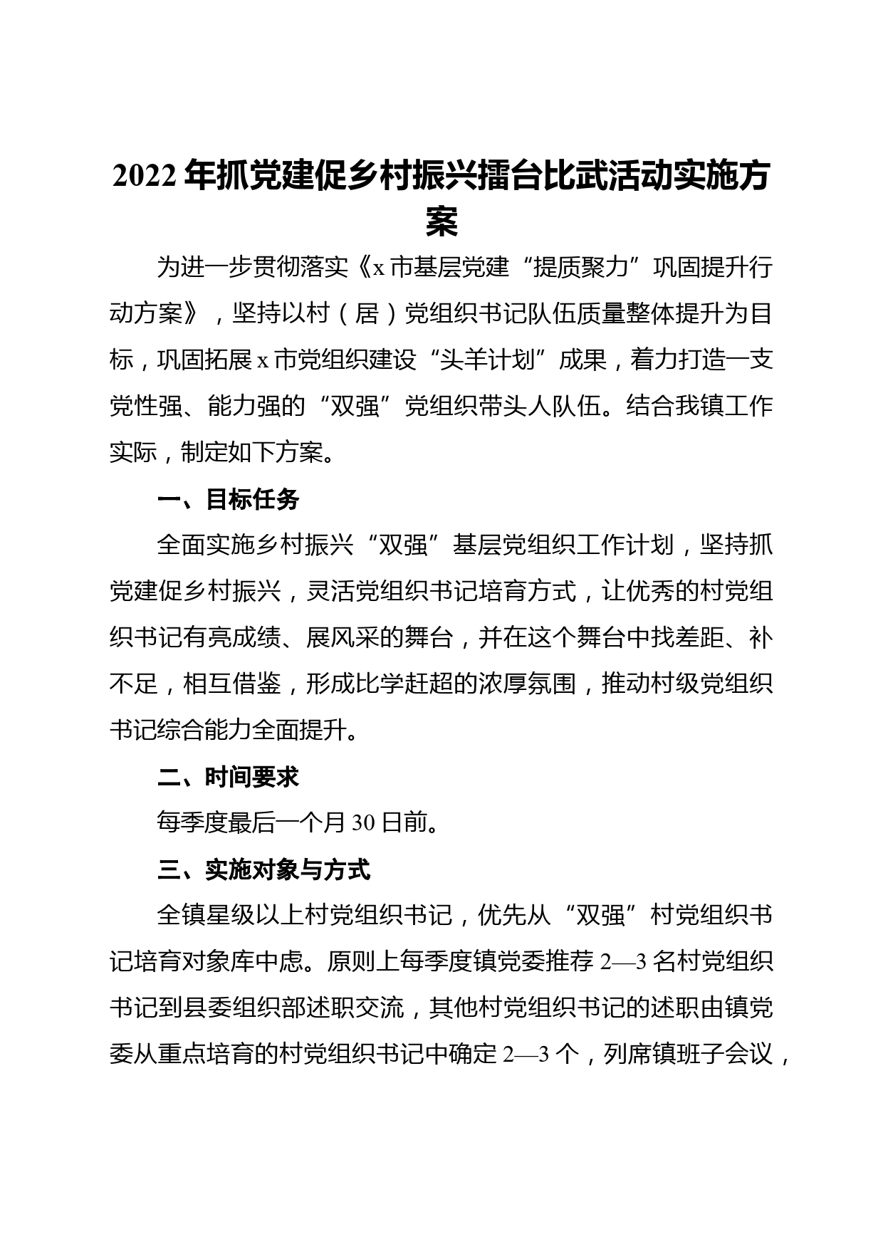 2022年抓黨建促鄉(xiāng)村振興擂臺比武活動實施方案VIP免費