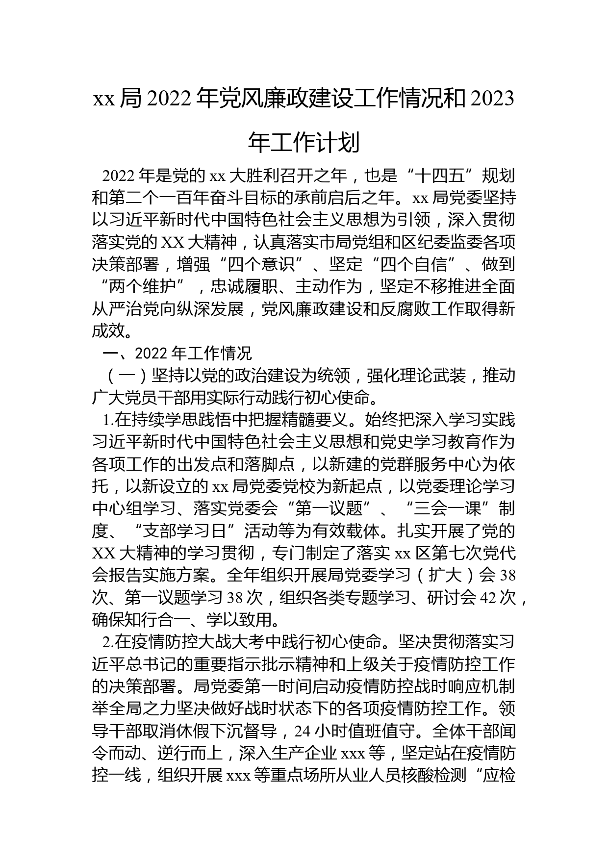 xx局2022年黨風(fēng)廉政建設(shè)工作情況和2023年工作計(jì)劃VIP免費(fèi)