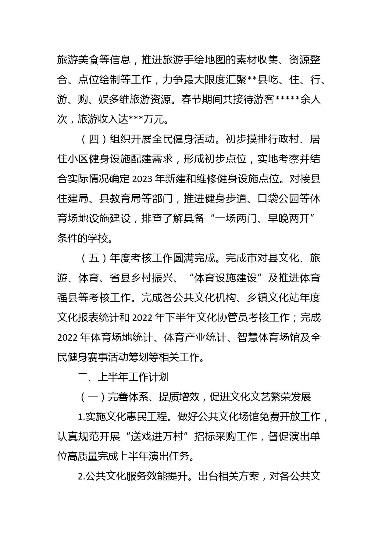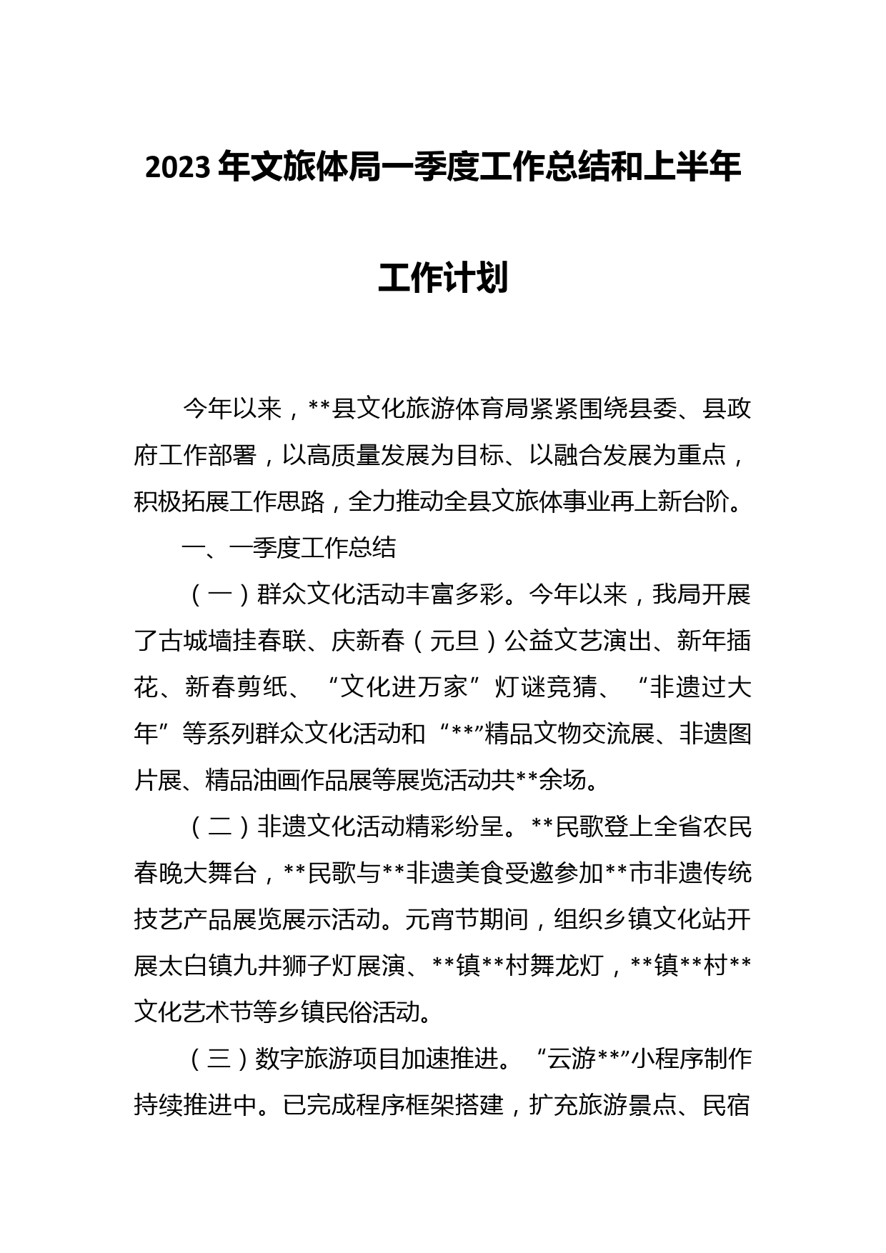 2023年文旅體局一季度工作總結(jié)和上半年工作計劃VIP免費