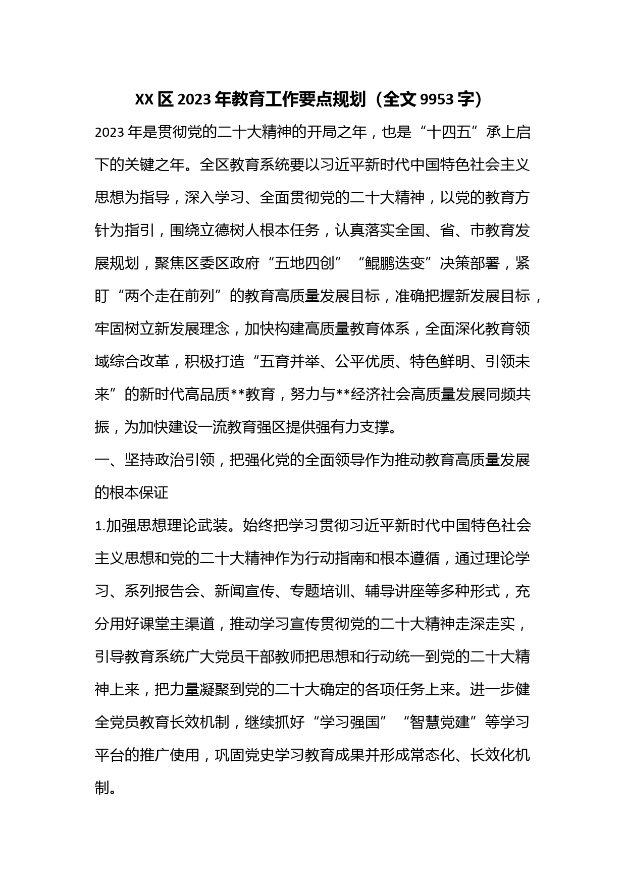 XX區(qū)2023年教育工作要點規(guī)劃(全文9953字)VIP免費