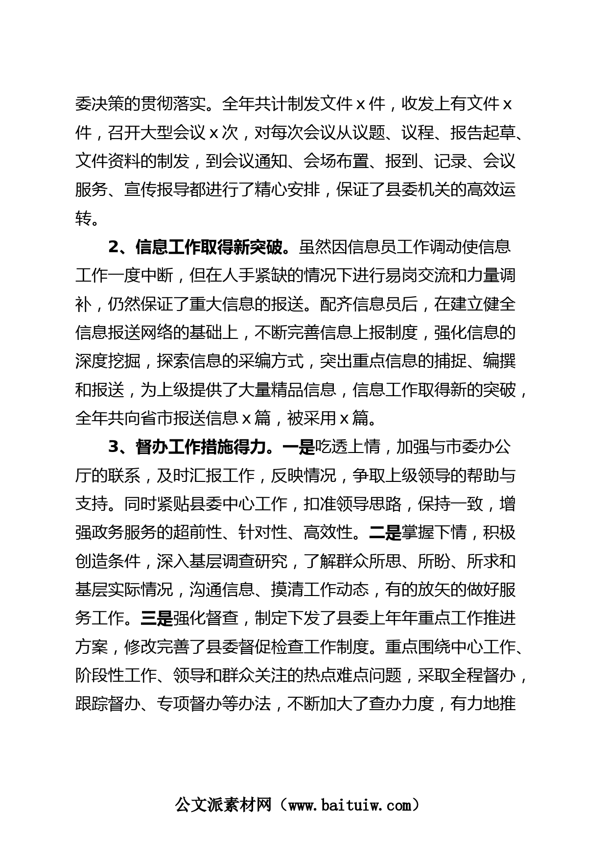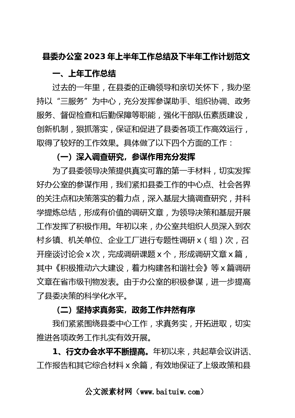 縣委辦公室2023年上半年工作總結(jié)和下半年計劃(匯報報告)VIP免費