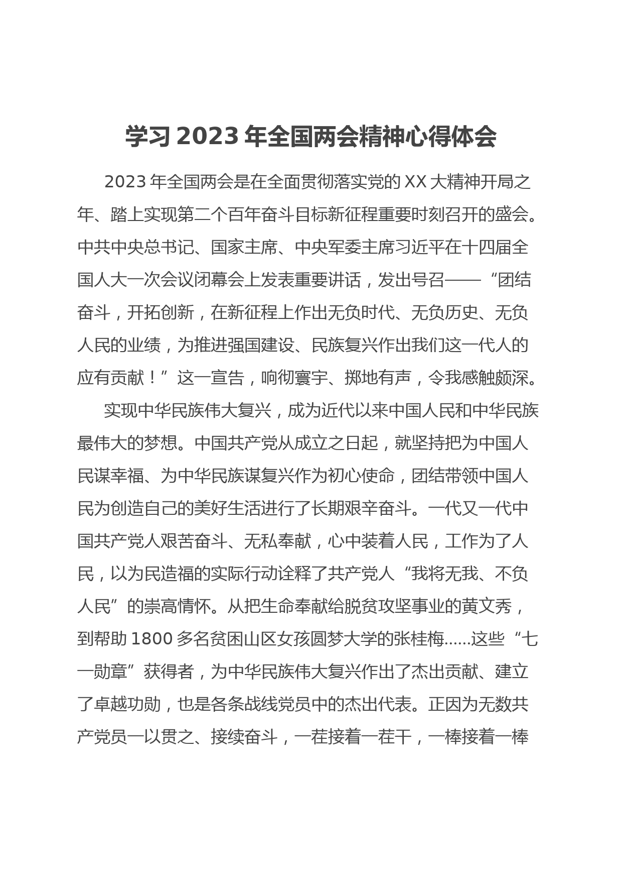 學(xué)習(xí)2023年全國兩會精神心得體會VIP免費(fèi)