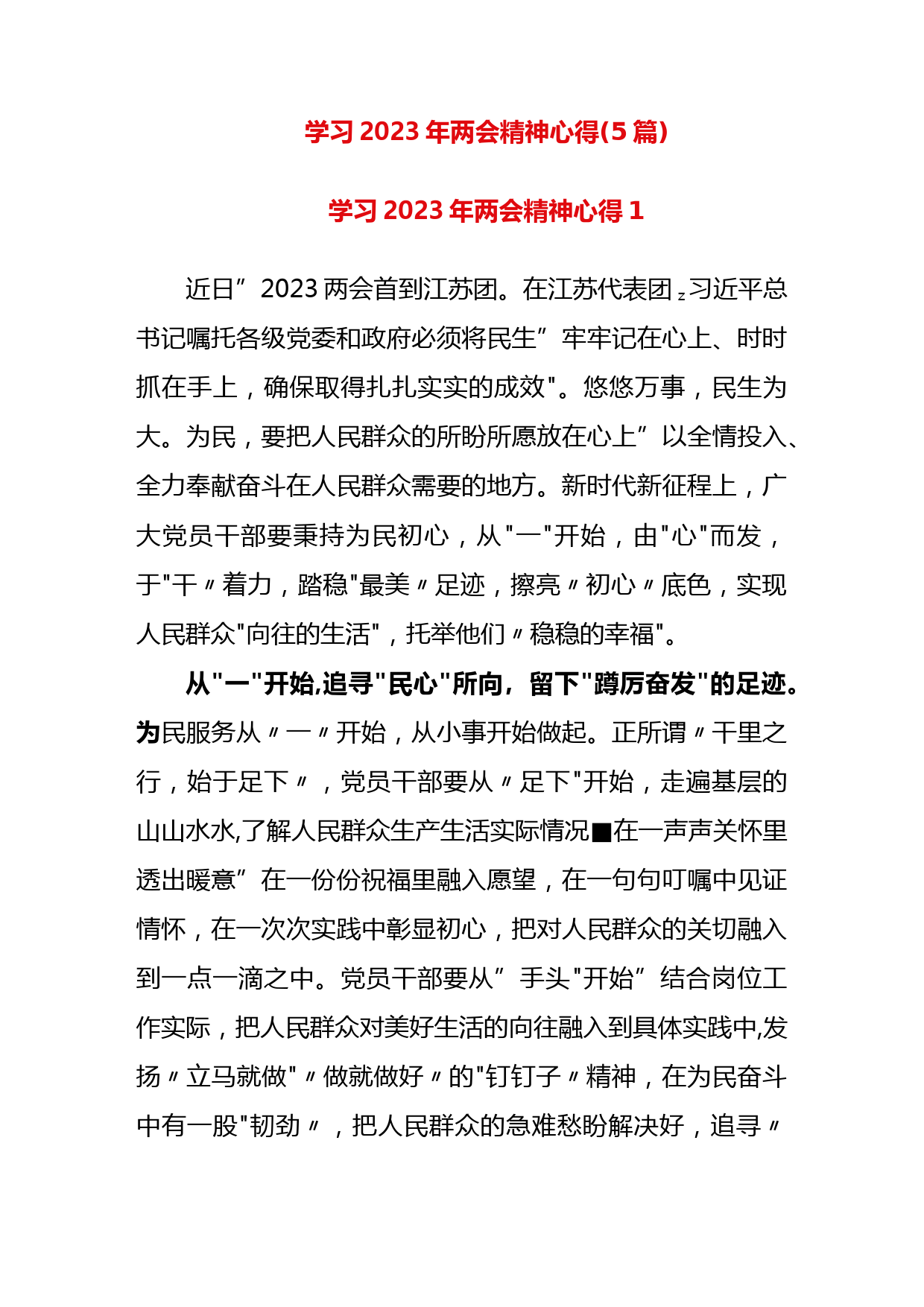 (5篇)機關(guān)黨員學(xué)習(xí)2023年兩會心得感悟VIP免費