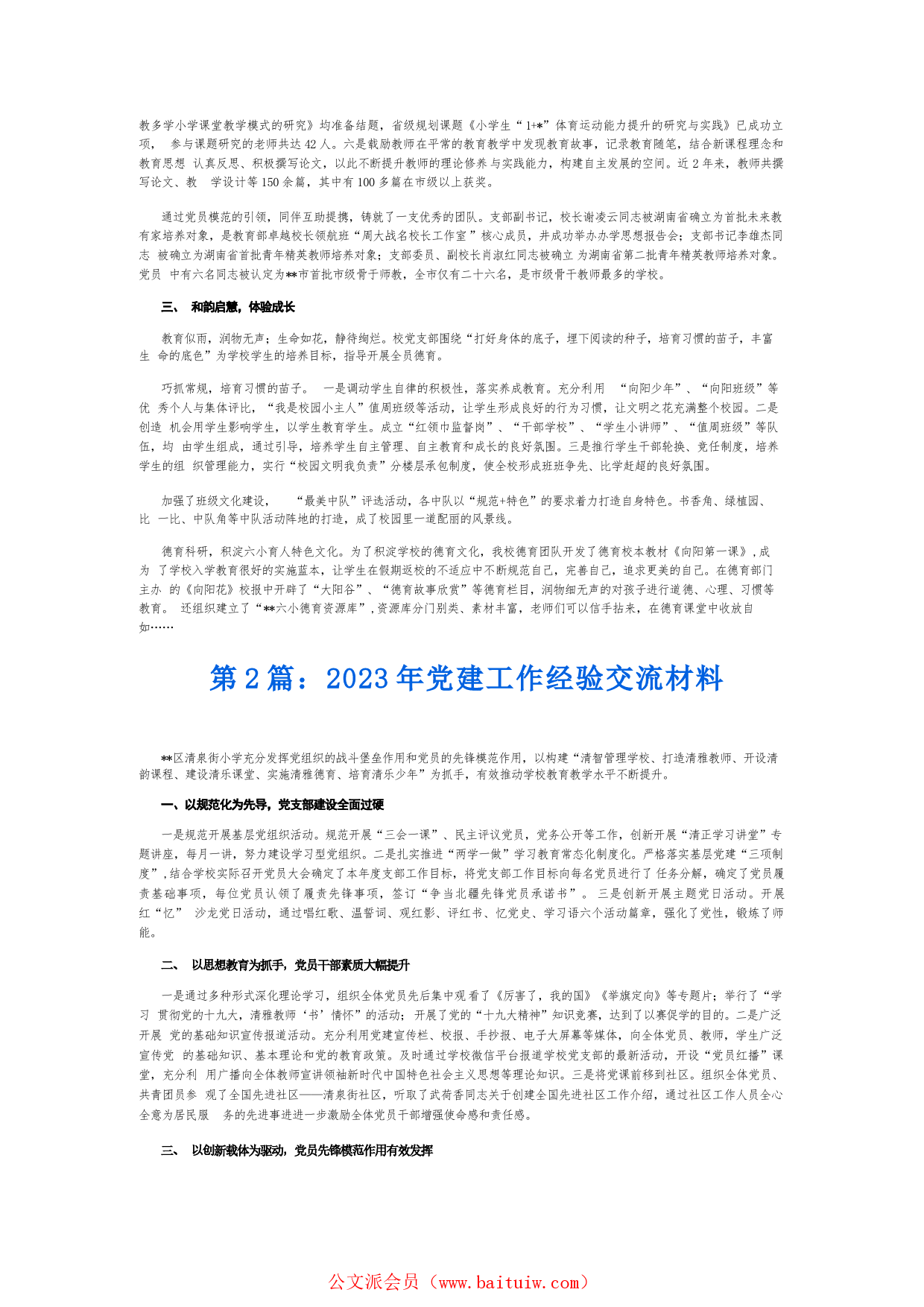2023年黨建工作經(jīng)驗(yàn)交流材料6篇VIP免費(fèi)