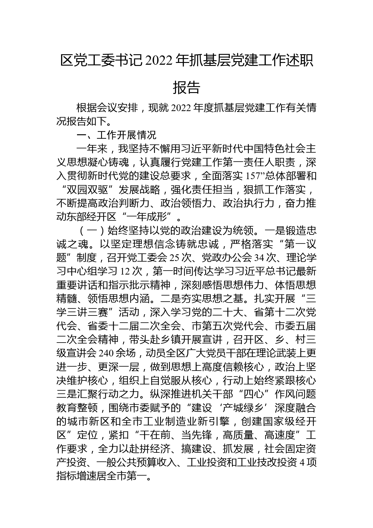 區(qū)黨工委書(shū)記2022年抓基層黨建工作述職報(bào)告VIP免費(fèi)