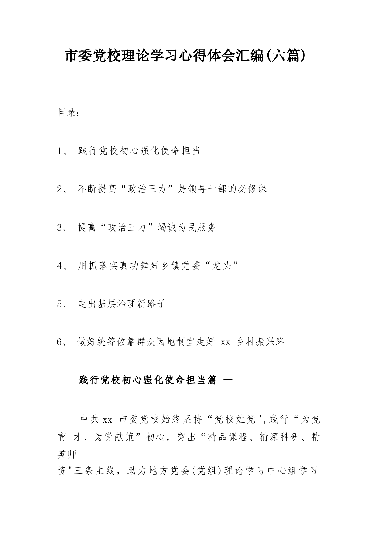 市委黨校理論學(xué)習(xí)心得體會(huì)匯編(六篇)VIP免費(fèi)